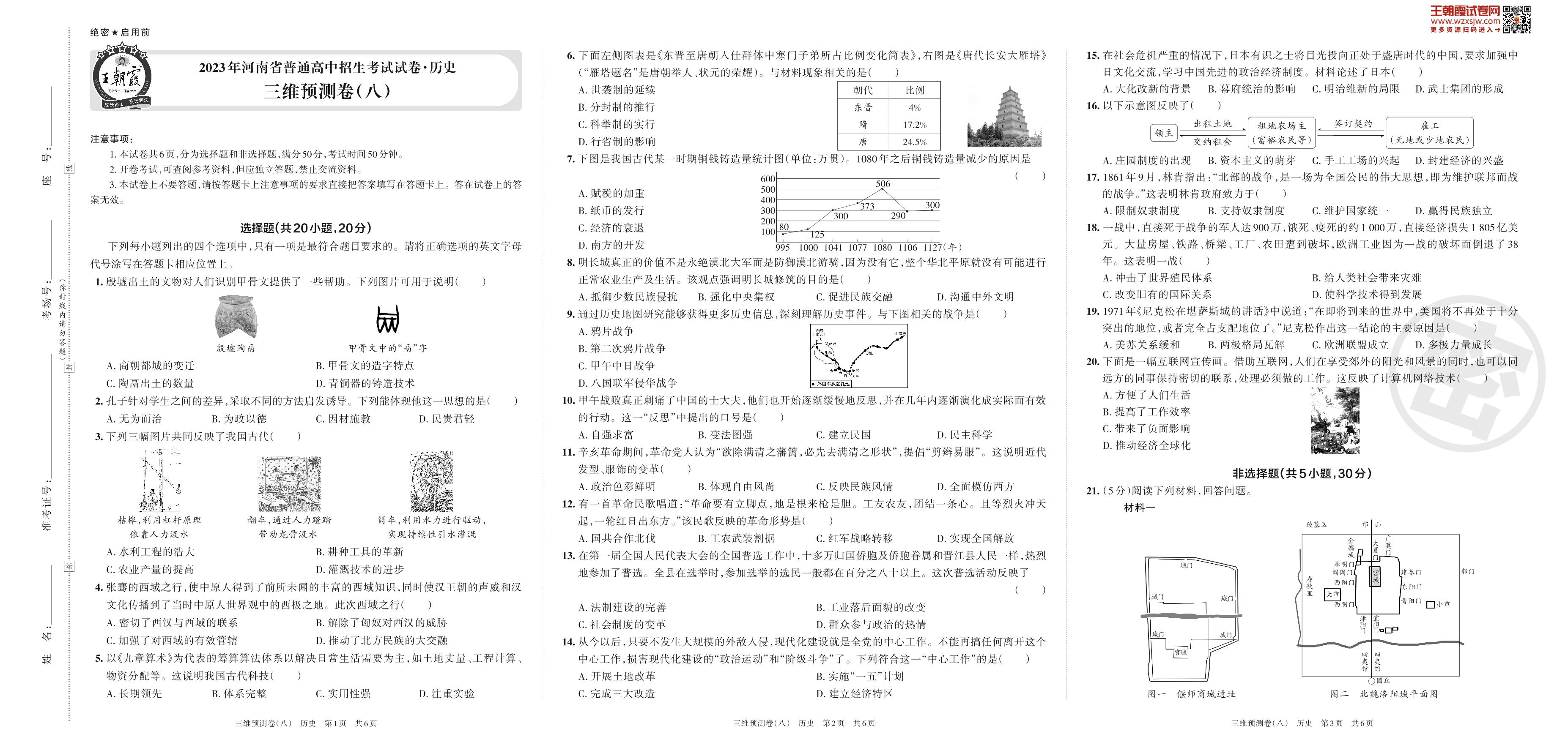 2023年河南省普通高中招生考试试卷·历史 三维预测卷(八)