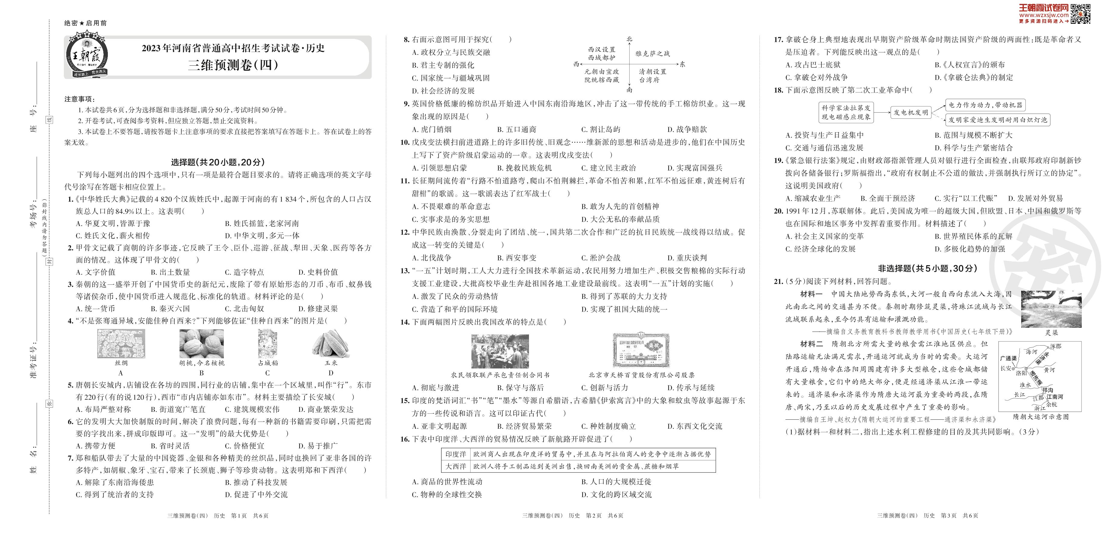 2023年河南省普通高中招生考试试卷·历史 三维预测卷(四)