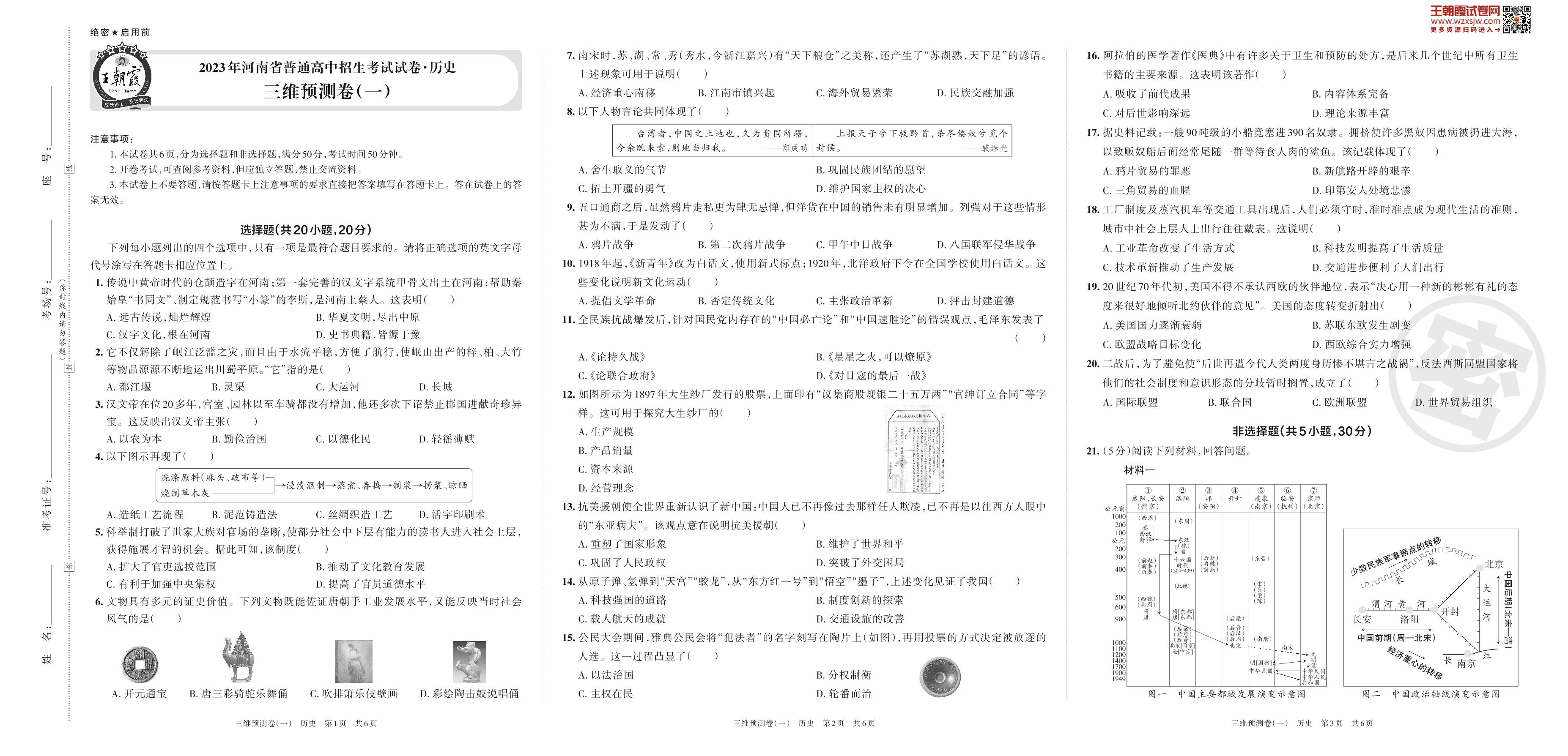2023年河南省普通高中招生考试试卷·历史 三维预测卷(一)