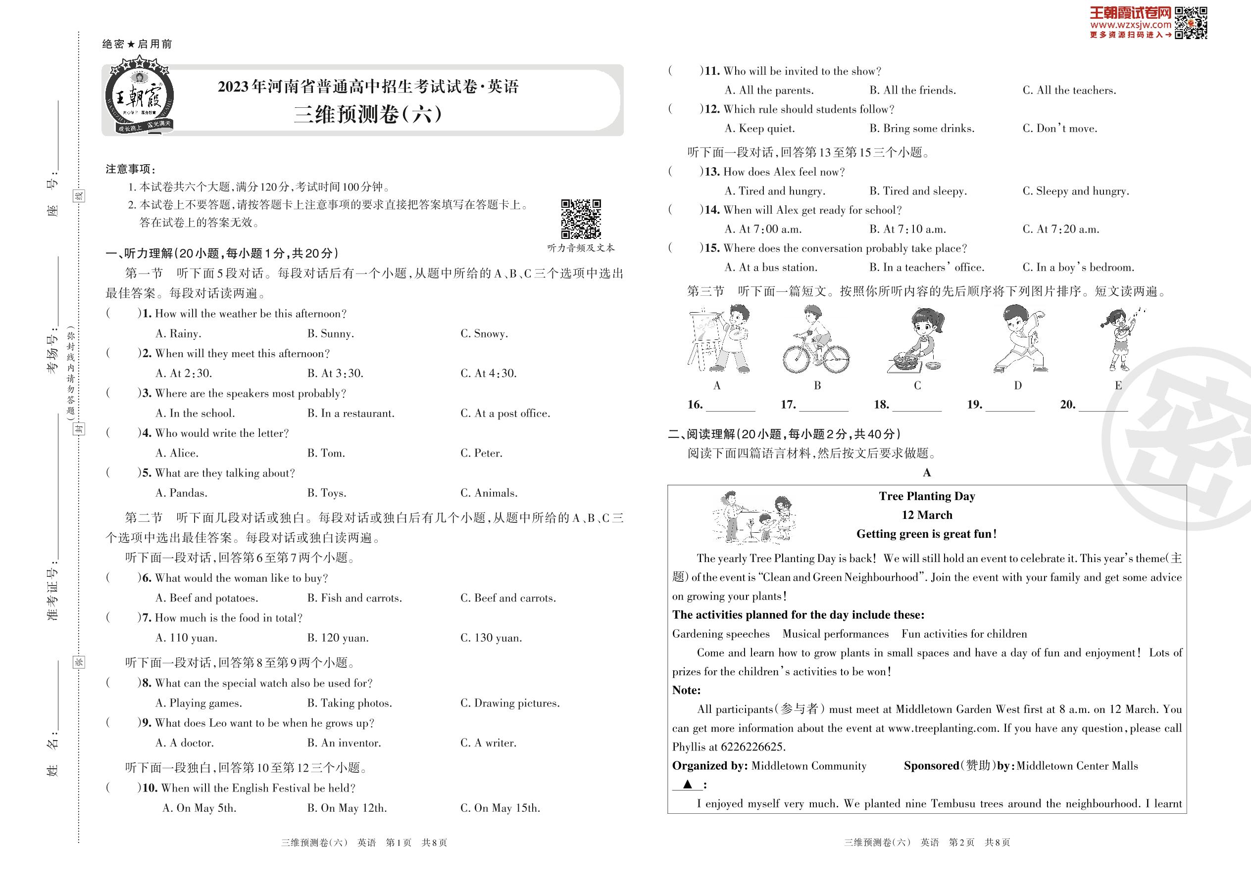 2023年河南省普通高中招生考试试卷·英语 三维预测卷(六)
