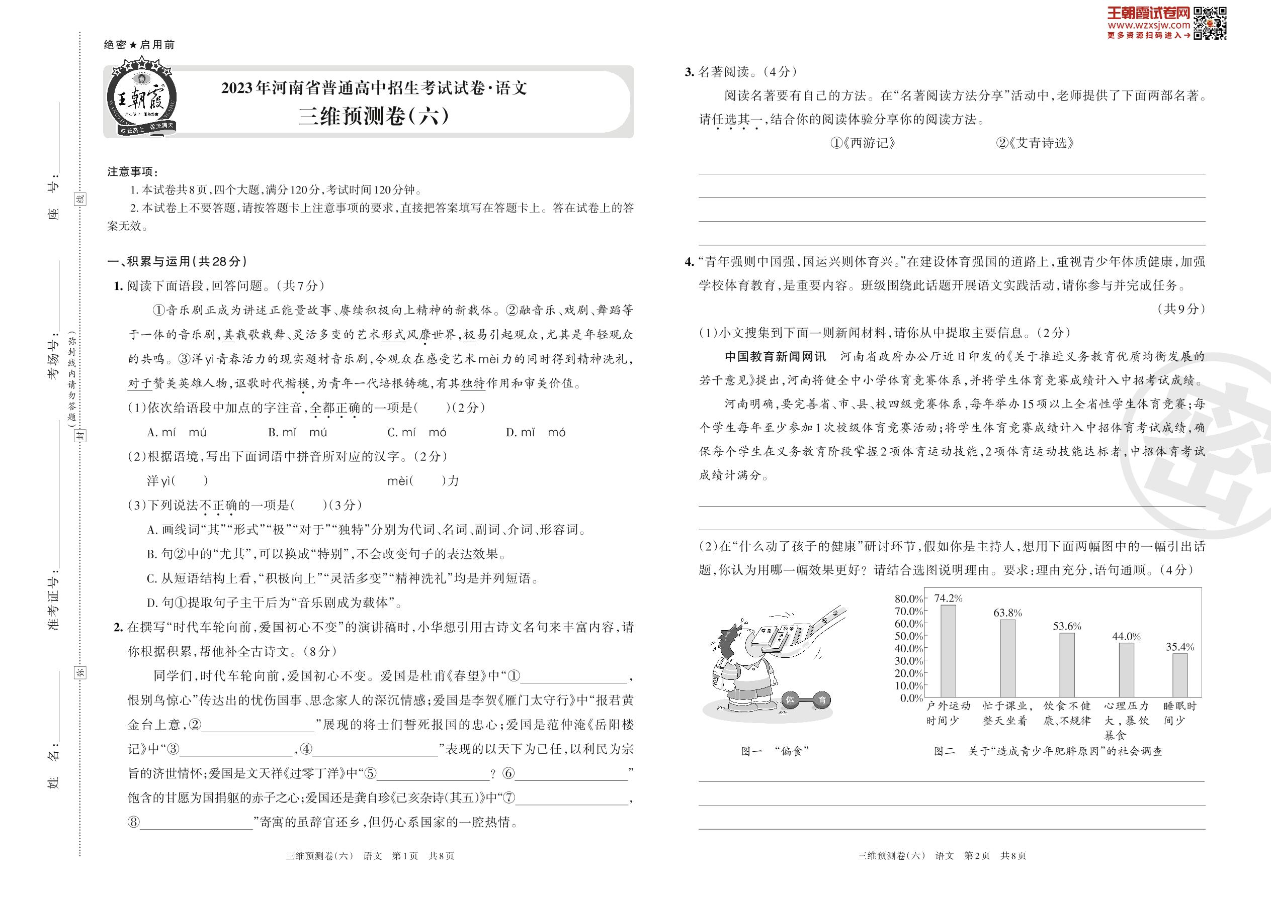 2023年河南省普通高中招生考试试卷·语文 三维预测卷(六)