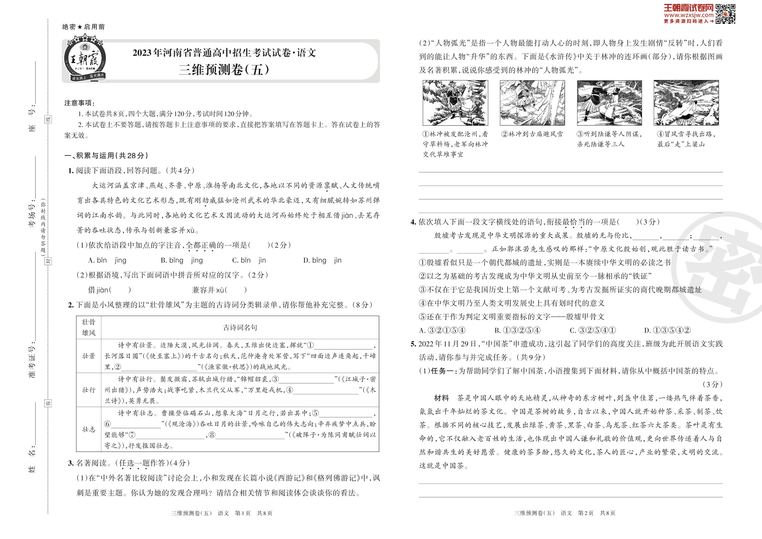 2023年河南省普通高中招生考试试卷·语文 三维预测卷(五)