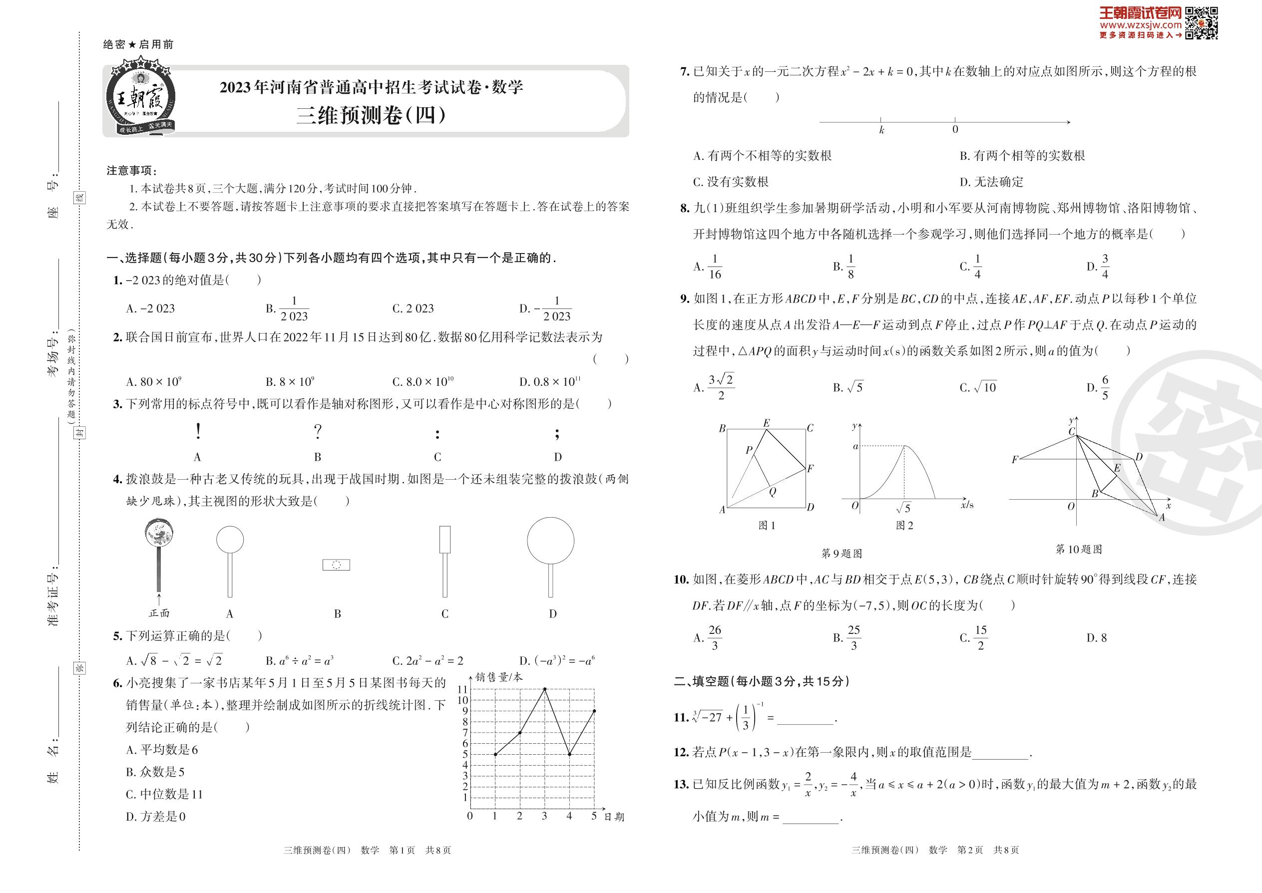 2023年河南省普通高中招生考试试卷·数学 三维预测卷(四)