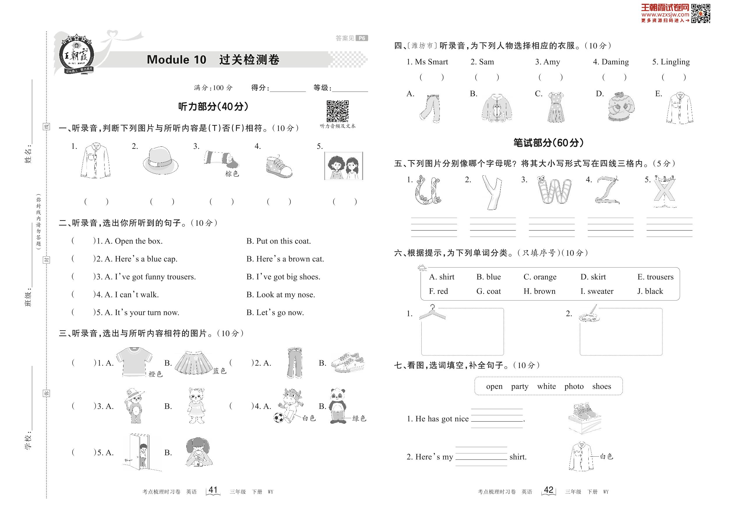 2023下册三年级英语外研版 Module 10 过关检测卷