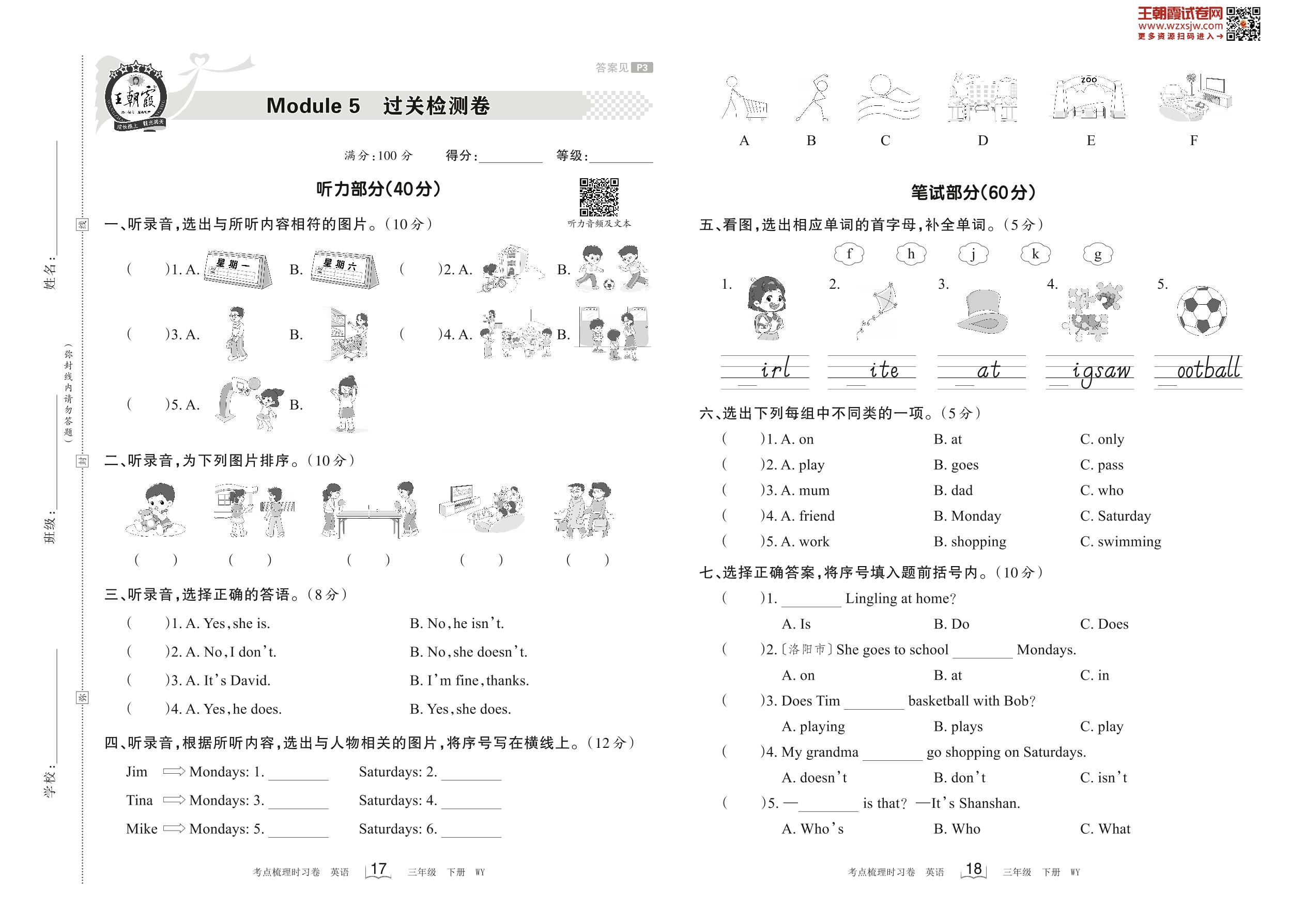 2023下册三年级英语外研版 Module 5 过关检测卷