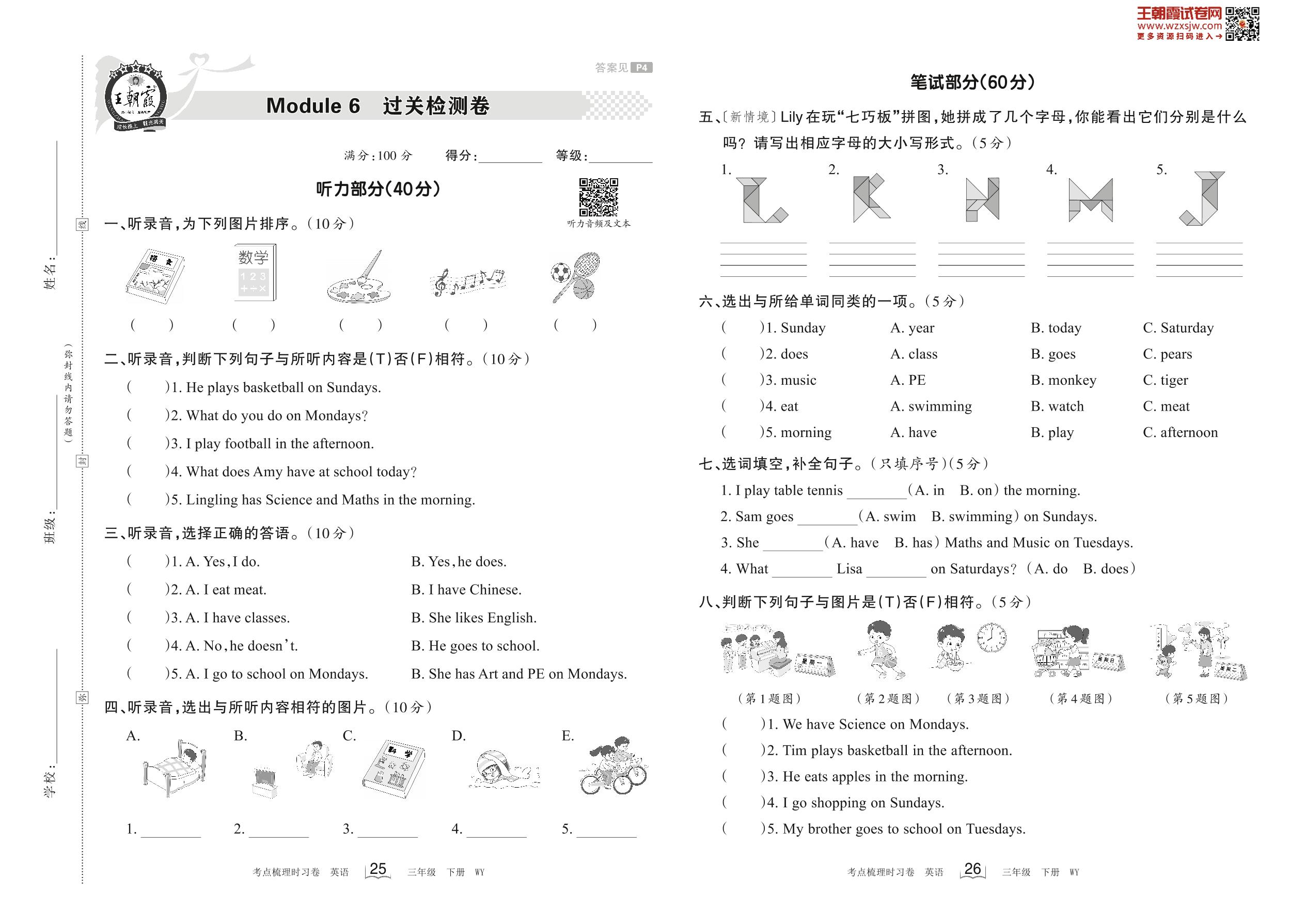 2023下册三年级英语外研版 Module 6 过关检测卷