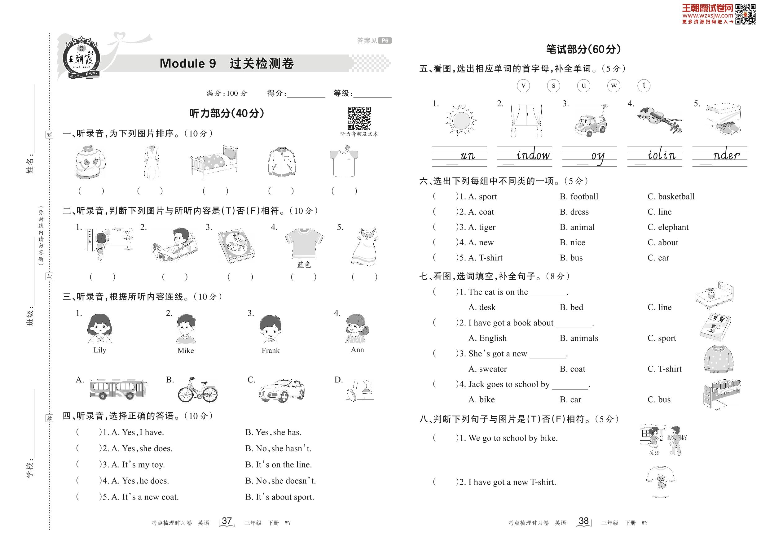 2023下册三年级英语外研版 Module 9 过关检测卷