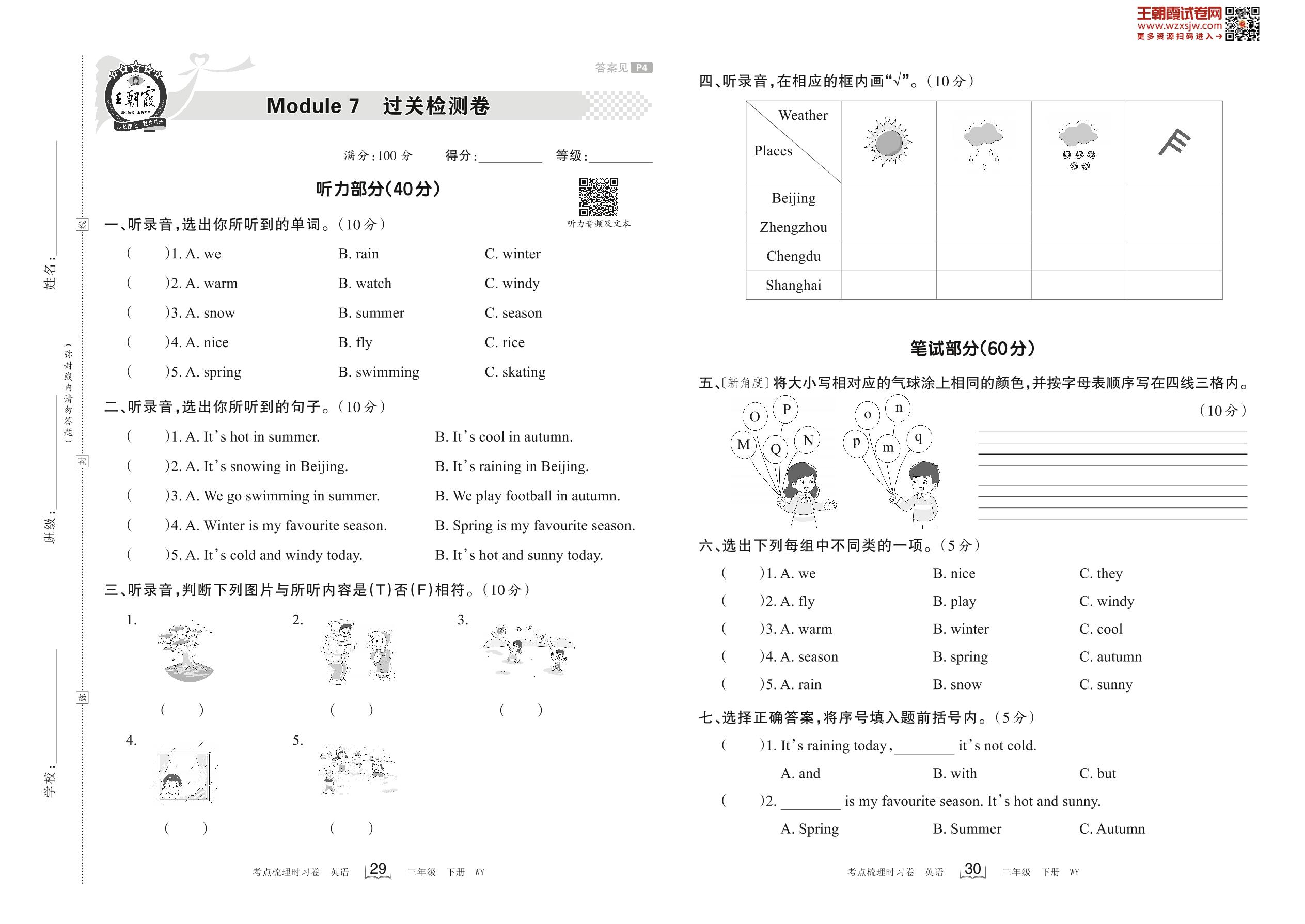 2023下册三年级英语外研版 Module 7 过关检测卷