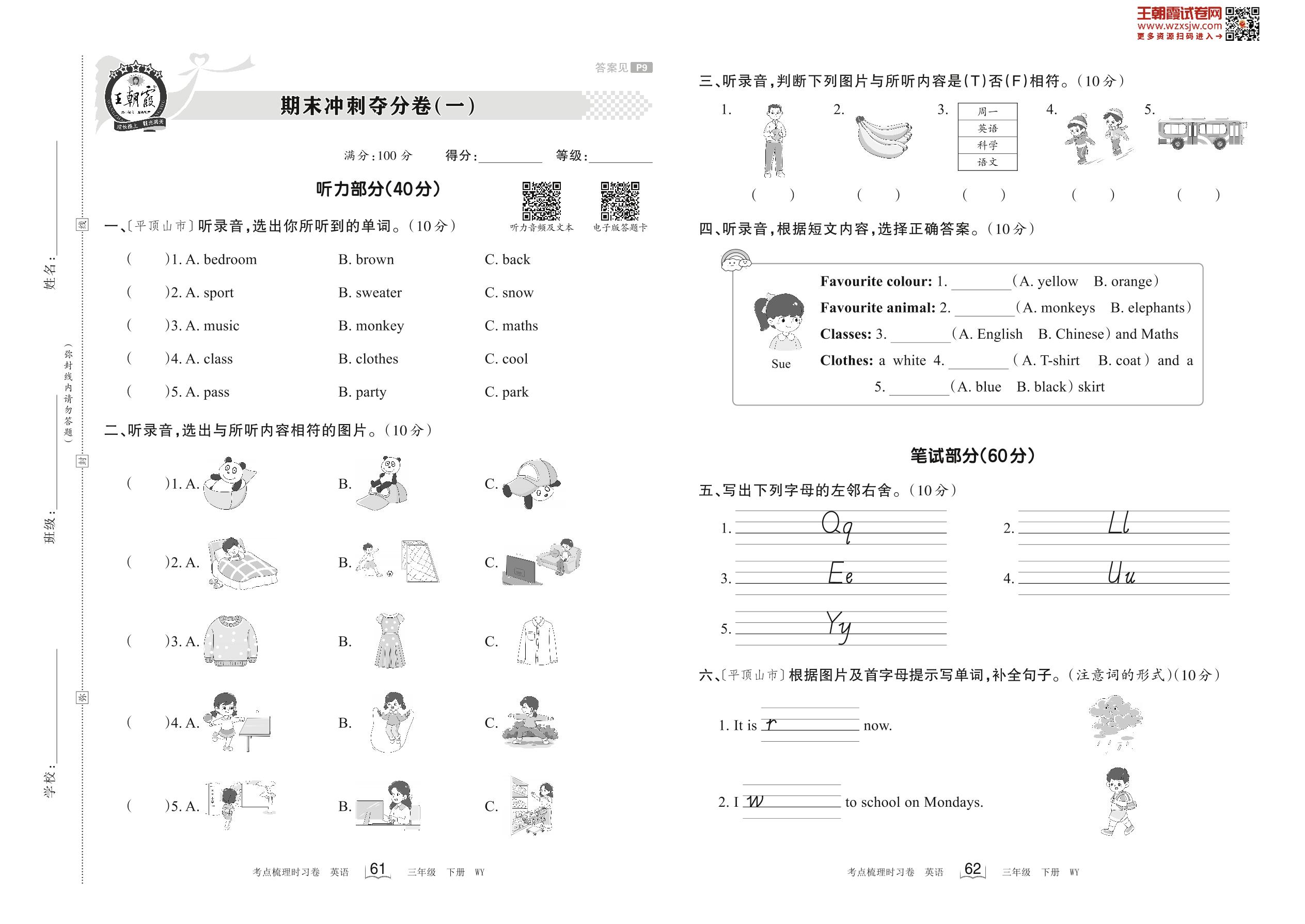 2023下册三年级英语外研版 期末冲刺夺分卷(一)