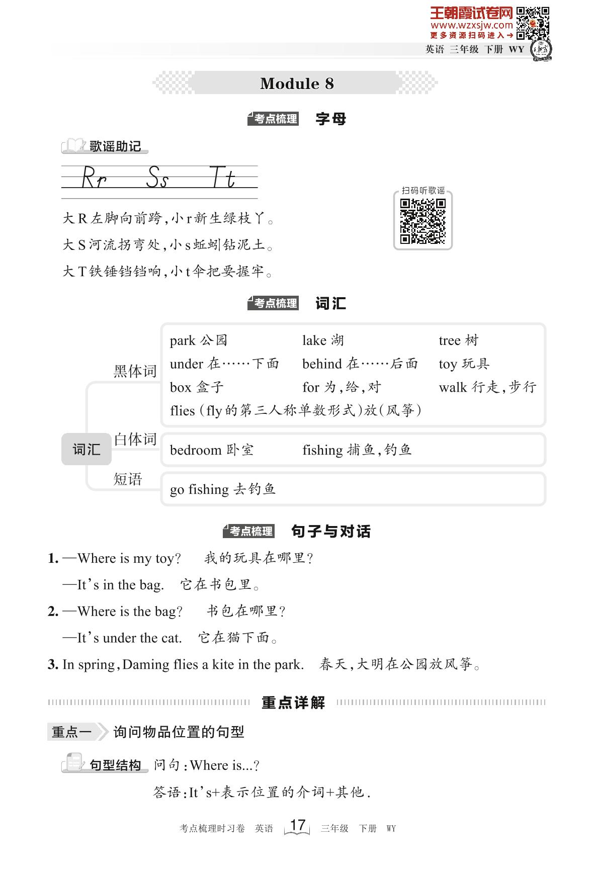 2023下册三年级英语外研版 考点梳理手册——Module 8