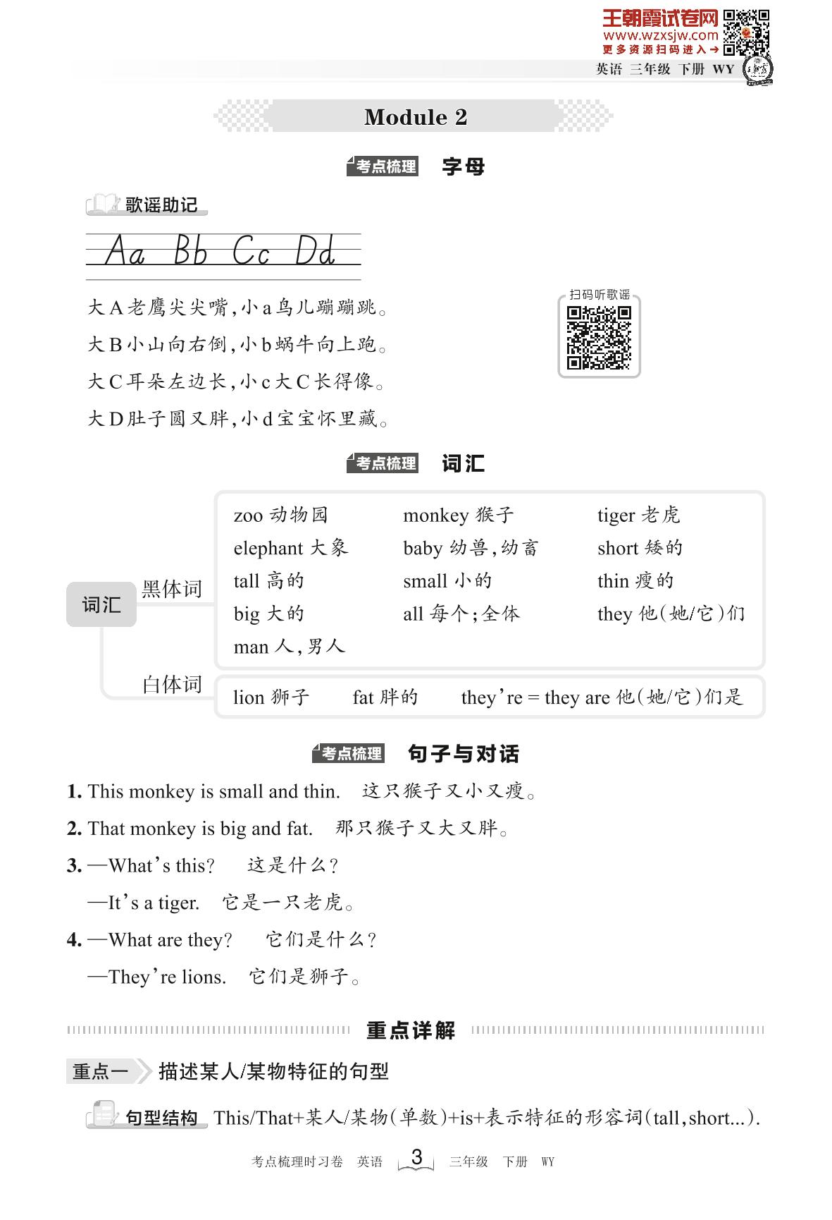 2023下册三年级英语外研版 考点梳理手册——Module 2