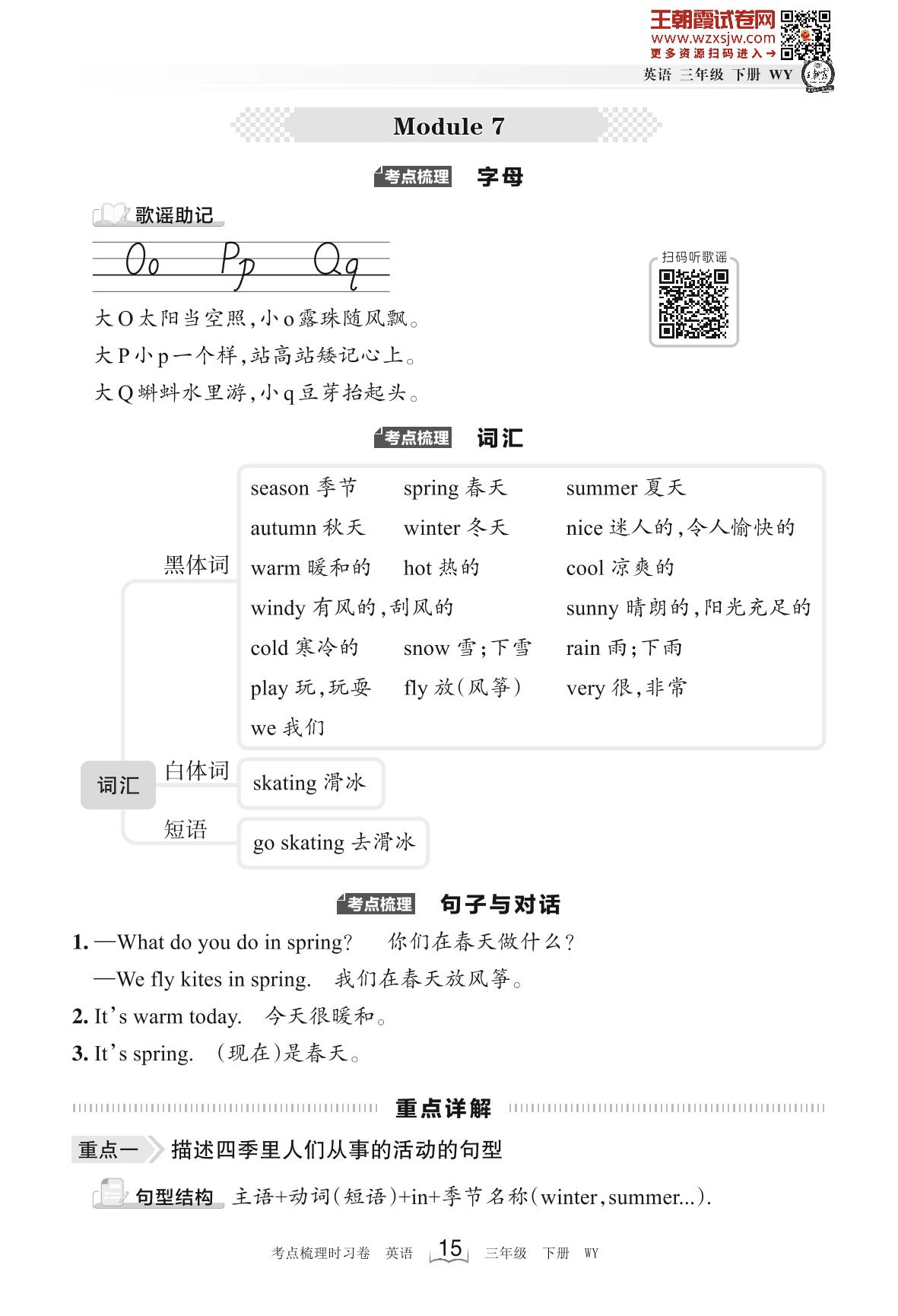 2023下册三年级英语外研版 考点梳理手册——Module 7