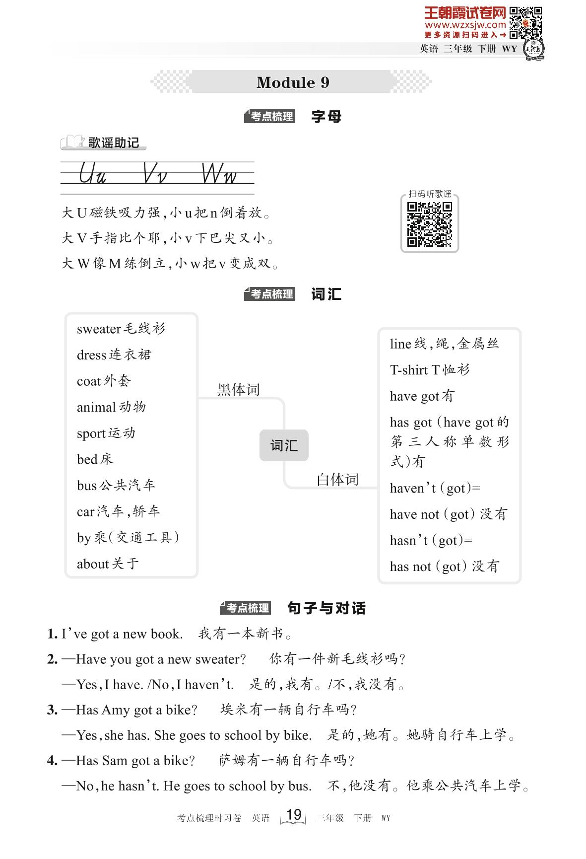 2023下册三年级英语外研版 考点梳理手册——Module 9