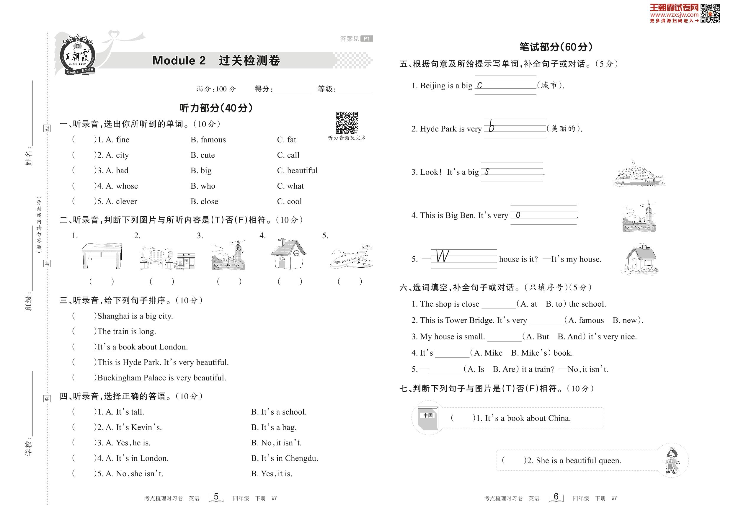 2023下册四年级英语外研版 Module 2 过关检测卷