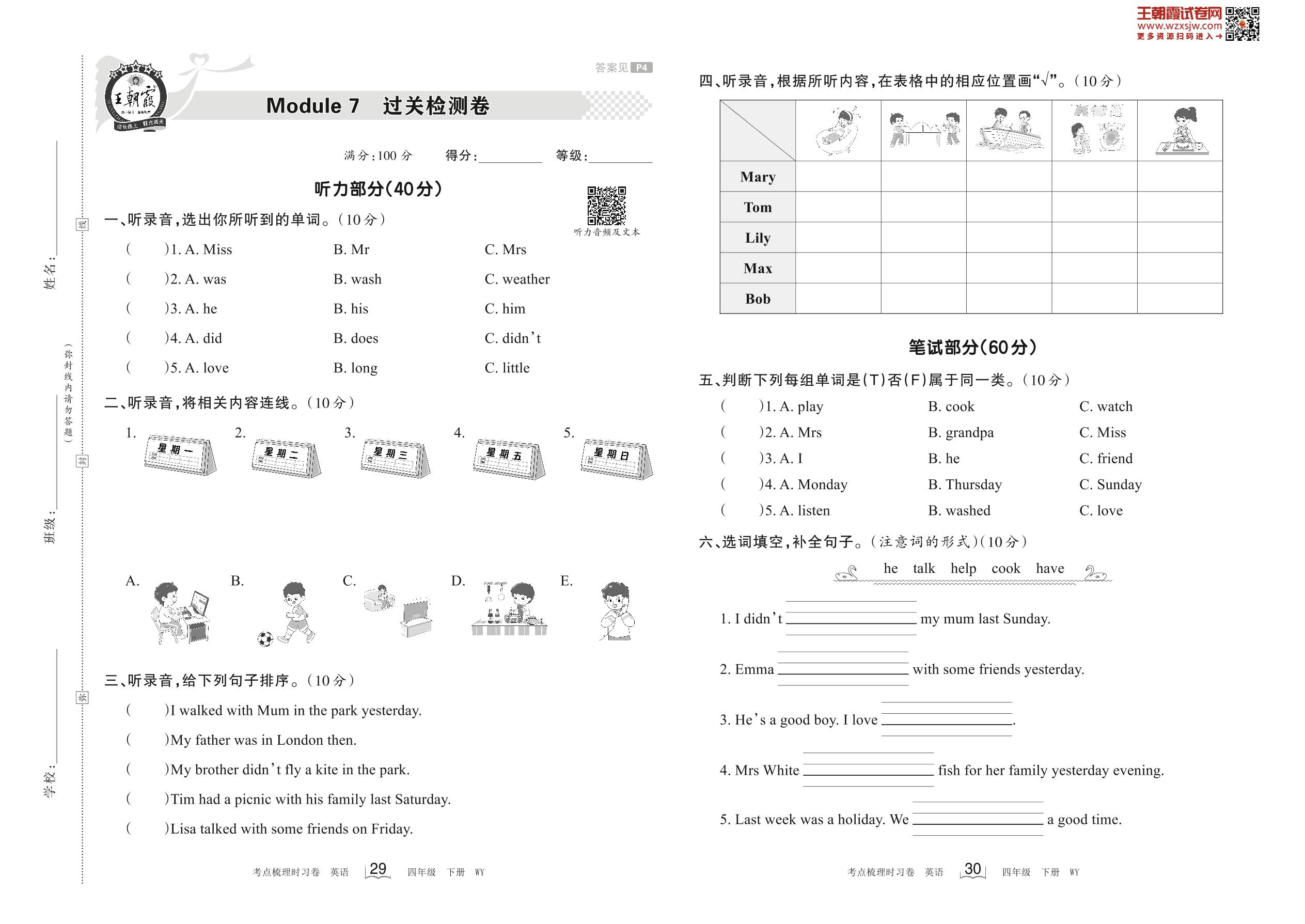 2023下册四年级英语外研版 Module 7 过关检测卷