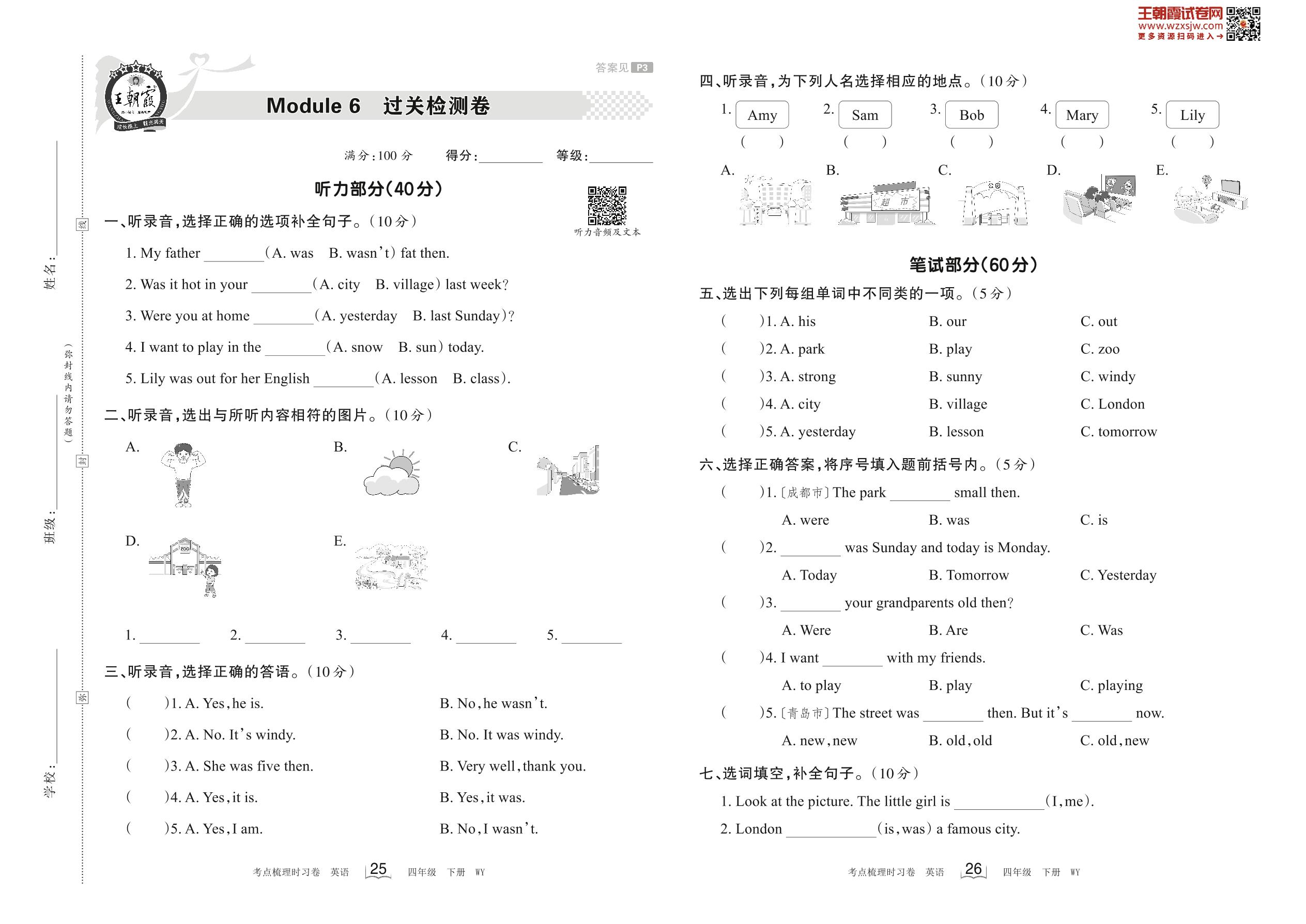 2023下册四年级英语外研版 Module 6 过关检测卷