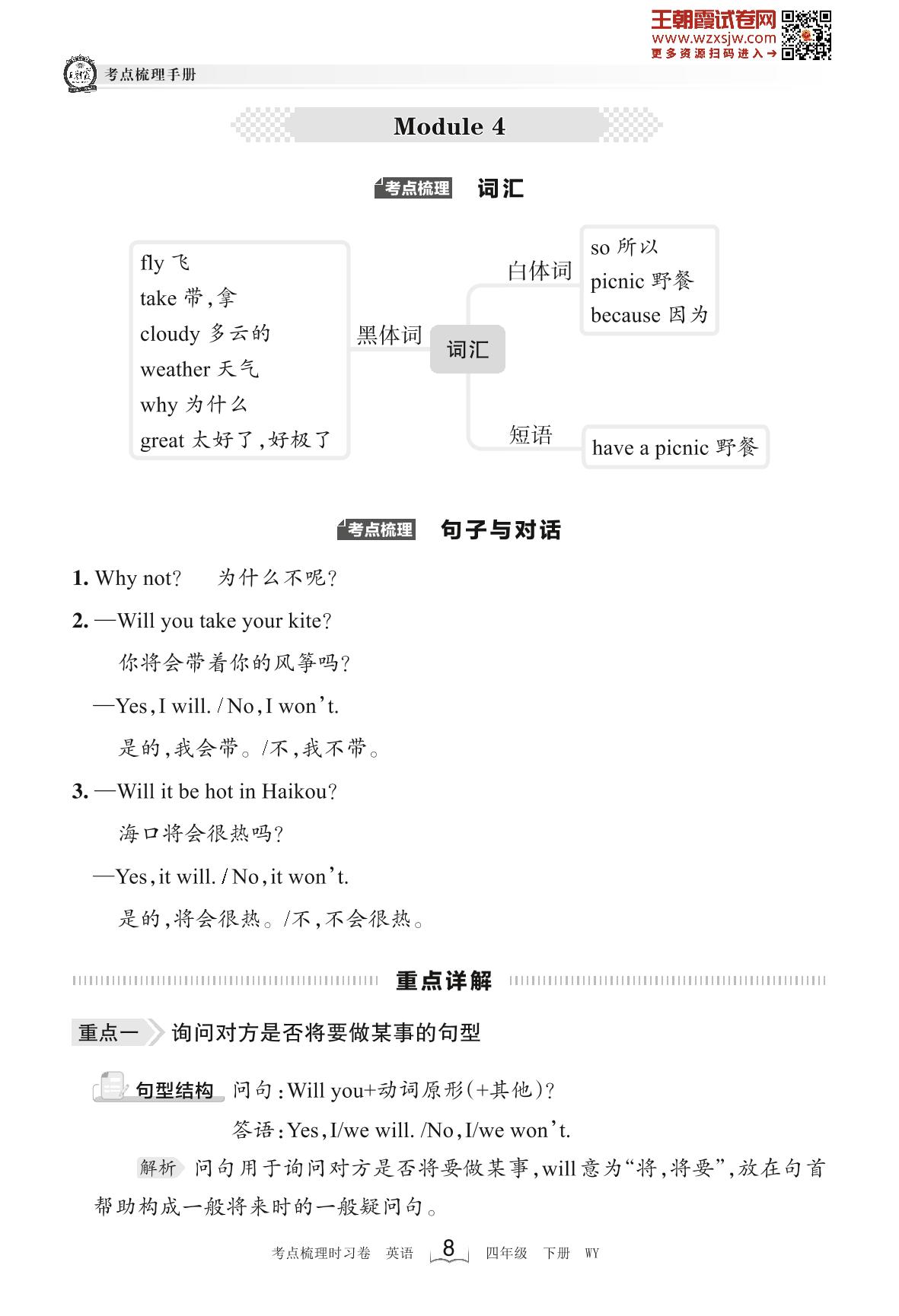 2023下册四年级英语外研版 考点梳理手册——Module 4