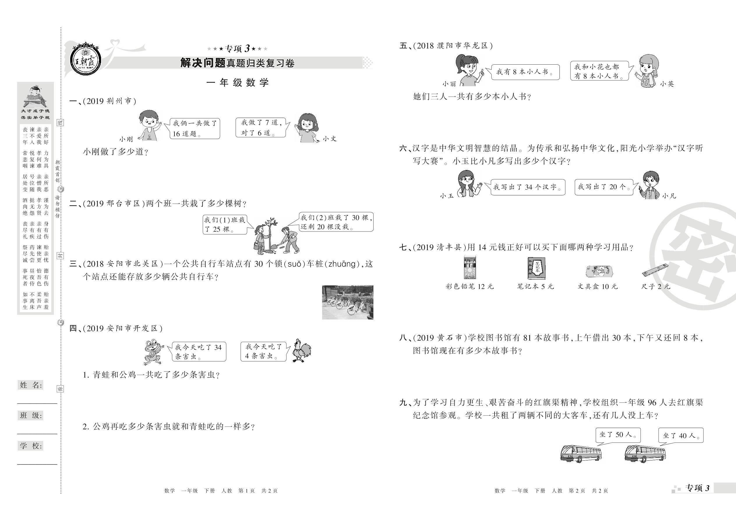 王朝霞期末专项卷——解决问题真题归类复习卷、新颖题速递:生活与数学一年级下册数学(人教版)_R210802212907【0】