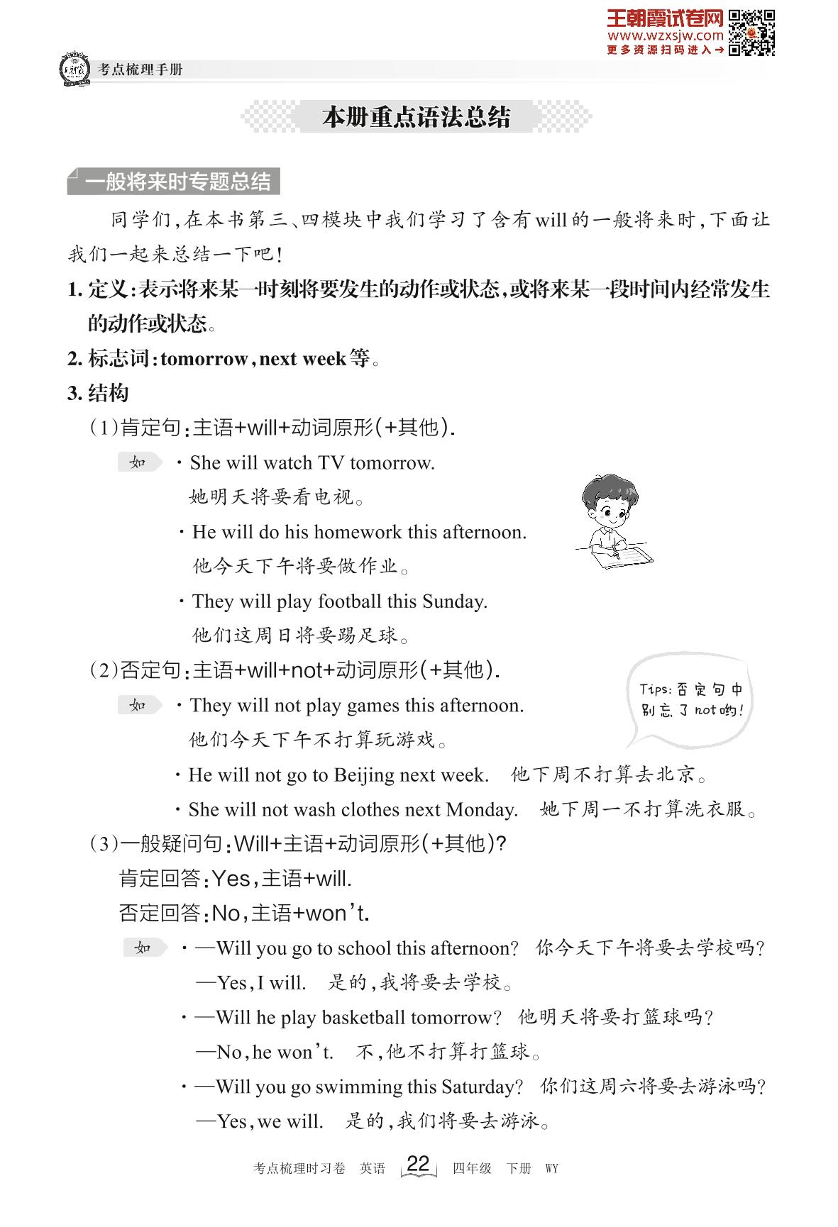 2023下册四年级英语外研版 考点梳理手册——本册重点语法总结