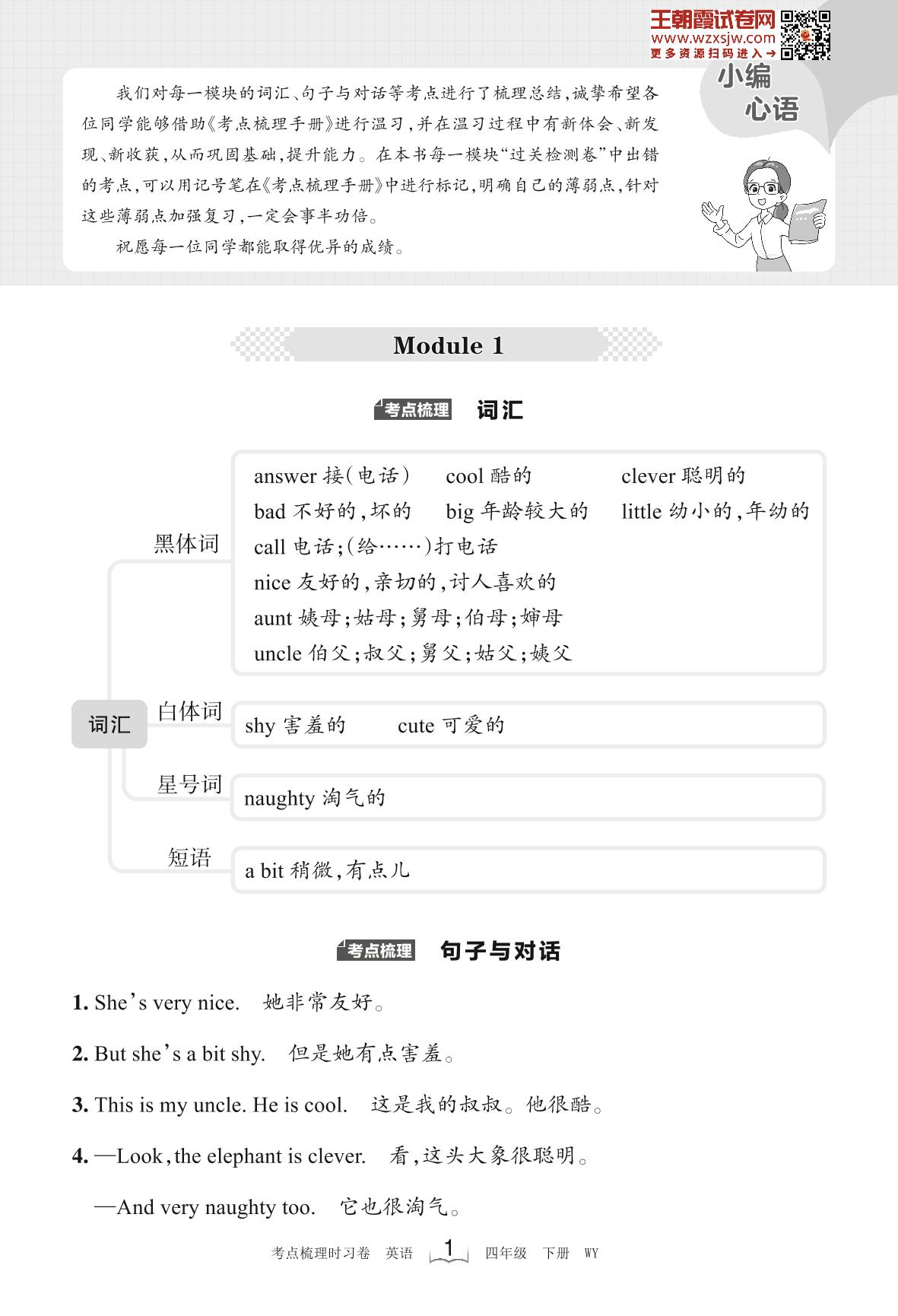 2023下册四年级英语外研版 考点梳理手册——Module 1