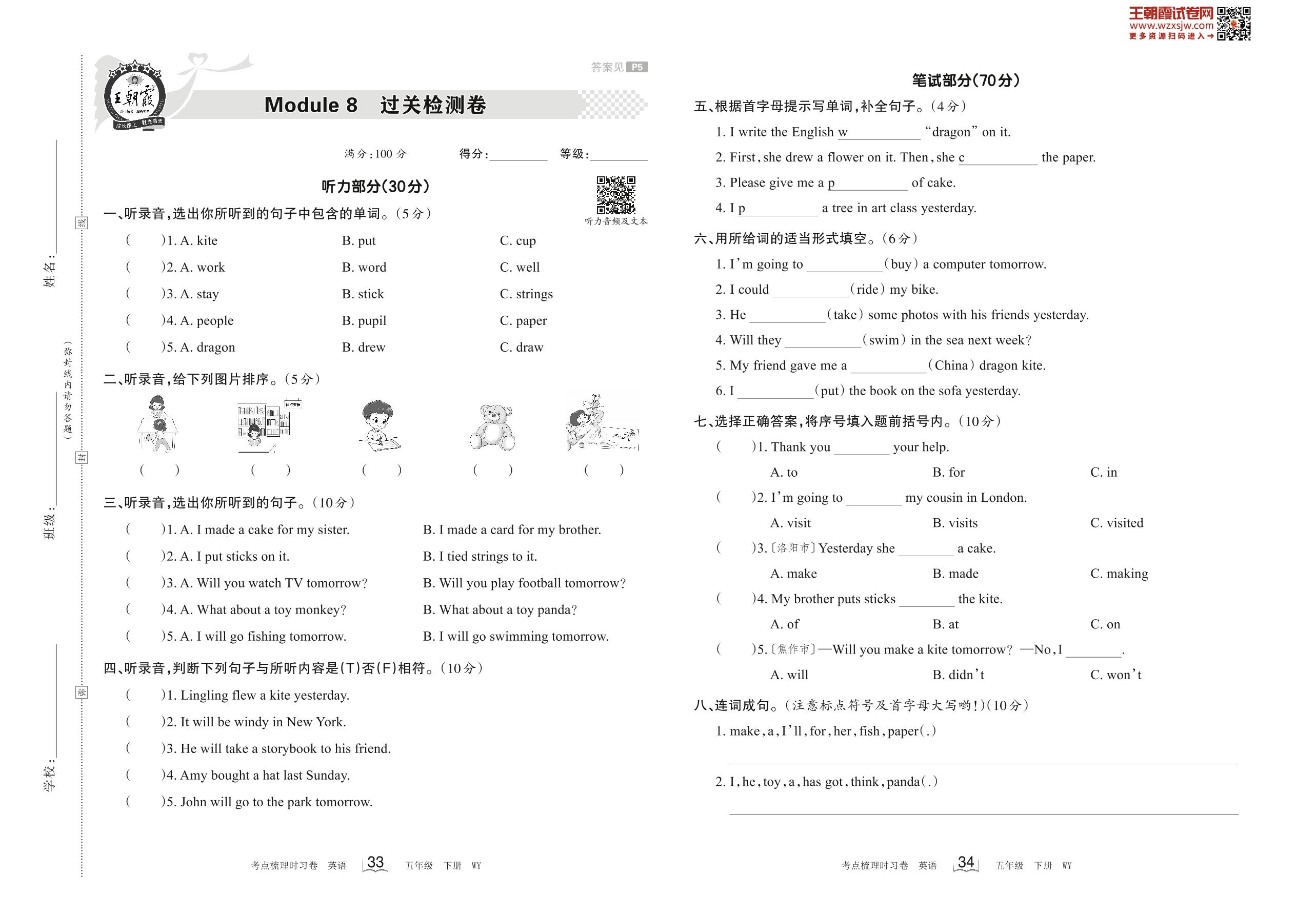 2023下册五年级英语外研版 Module 8 过关检测卷