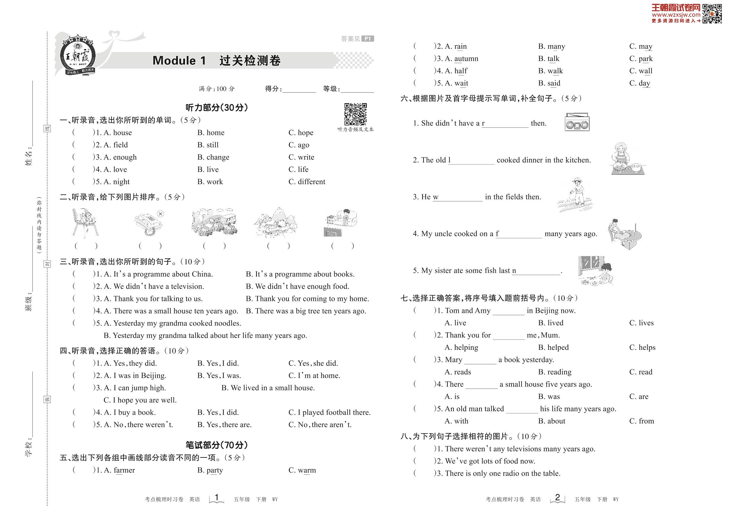 2023下册五年级英语外研版 Module 1 过关检测卷