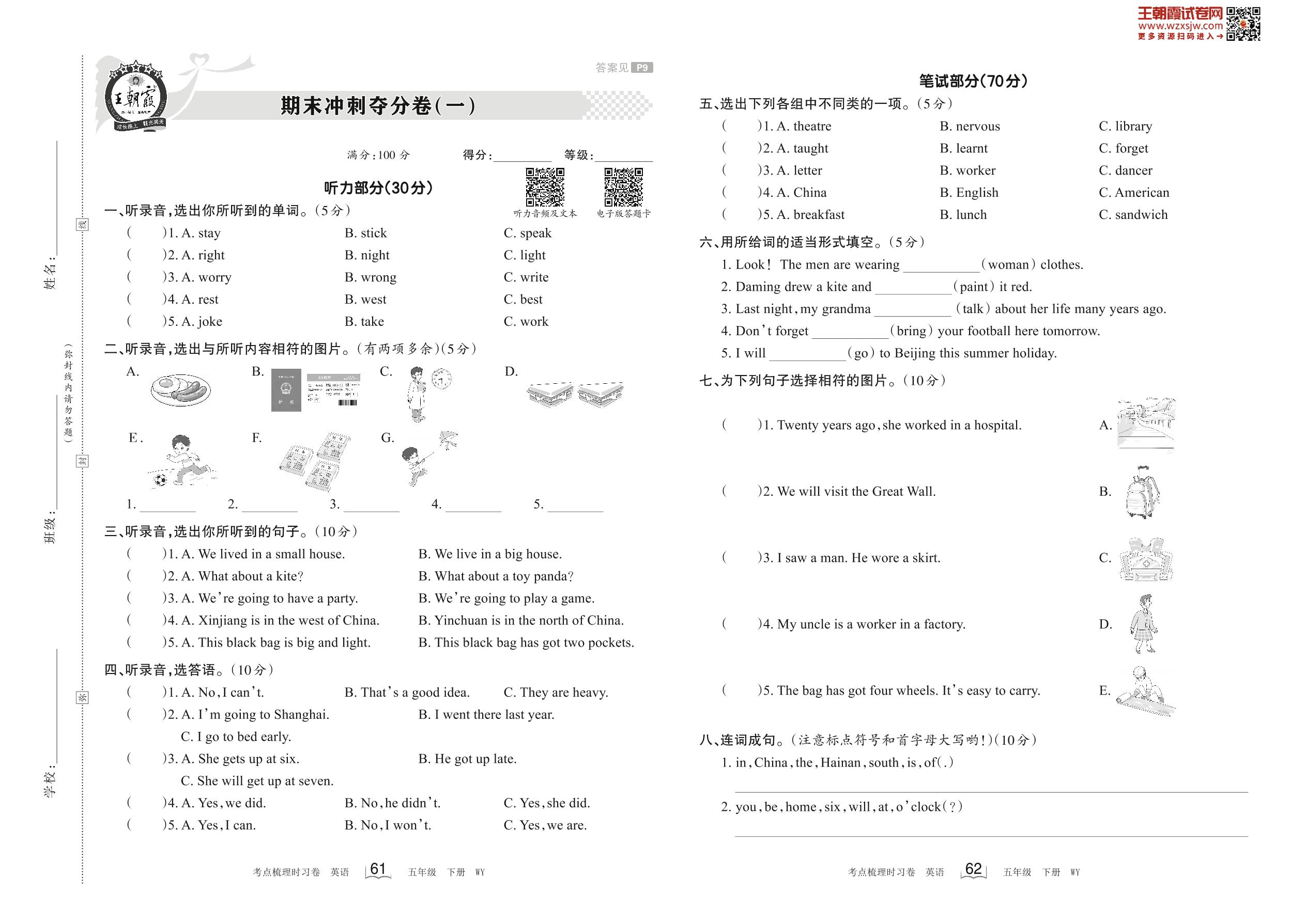 2023下册五年级英语外研版 期末冲刺夺分卷(一)