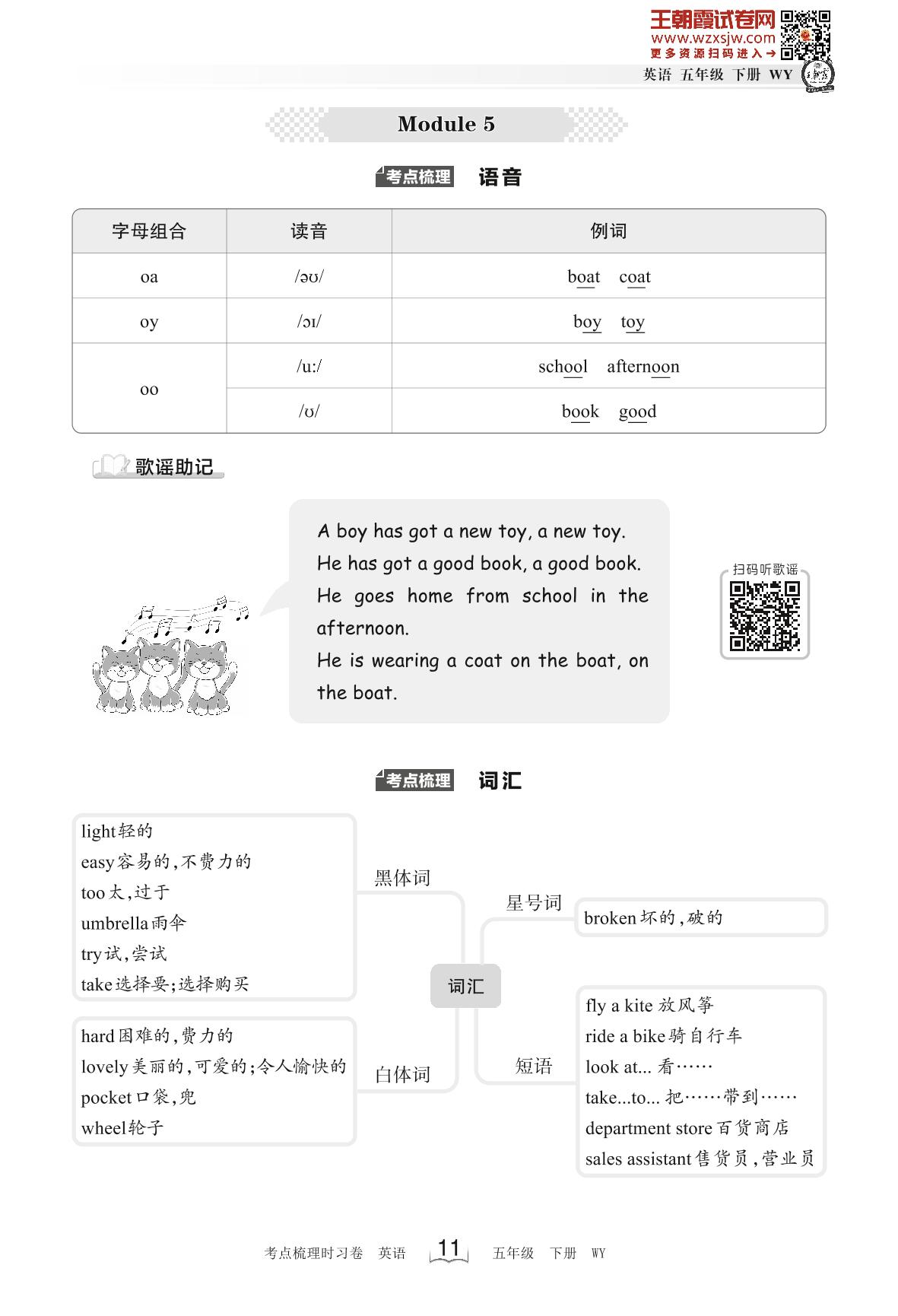 2023下册五年级英语外研版 考点梳理手册——Module 5