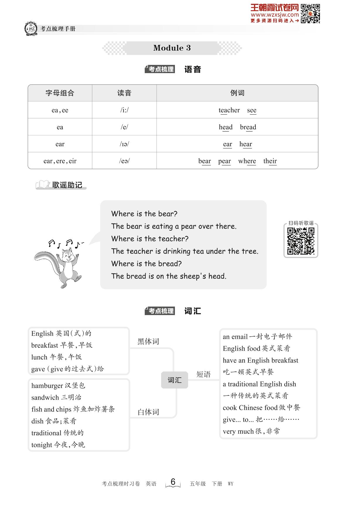 2023下册五年级英语外研版 考点梳理手册——Module 3