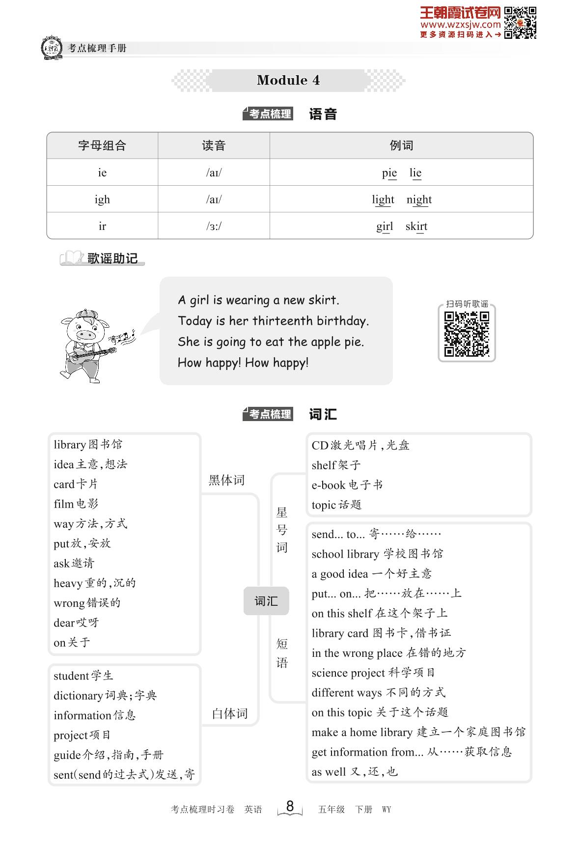 2023下册五年级英语外研版 考点梳理手册——Module 4