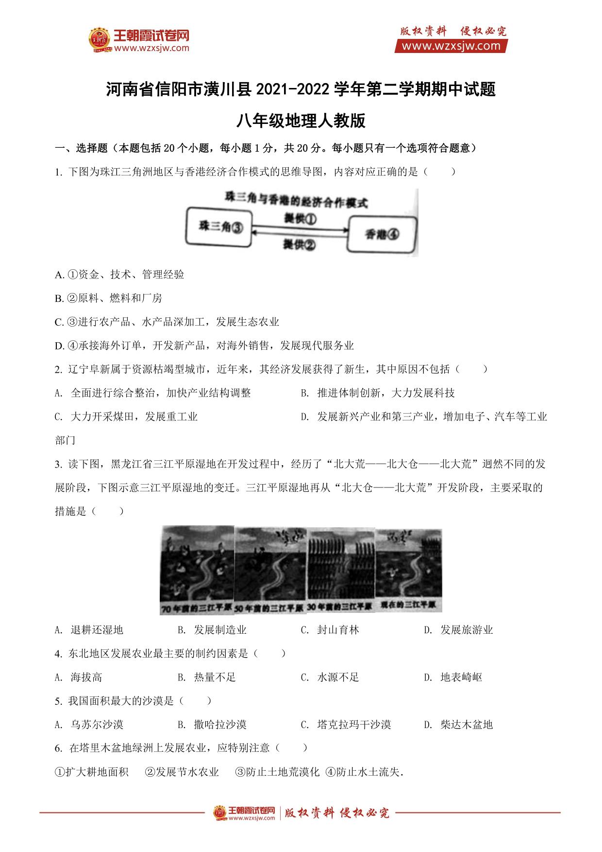 河南省信阳市潢川县2021-2022学年第二学期期中试题八年级地理(人教版)