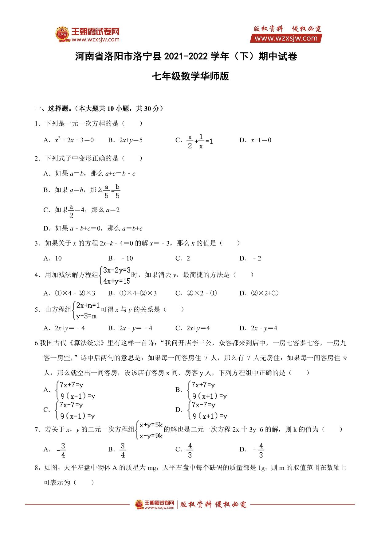 河南省洛阳市洛宁县2021-2022学年(下)期中试卷七年级数学(华师版)