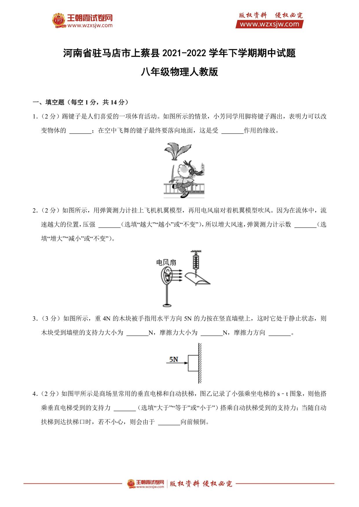 河南省驻马店市上蔡县2021-2022学年下学期期中试题八年级物理(人教版)