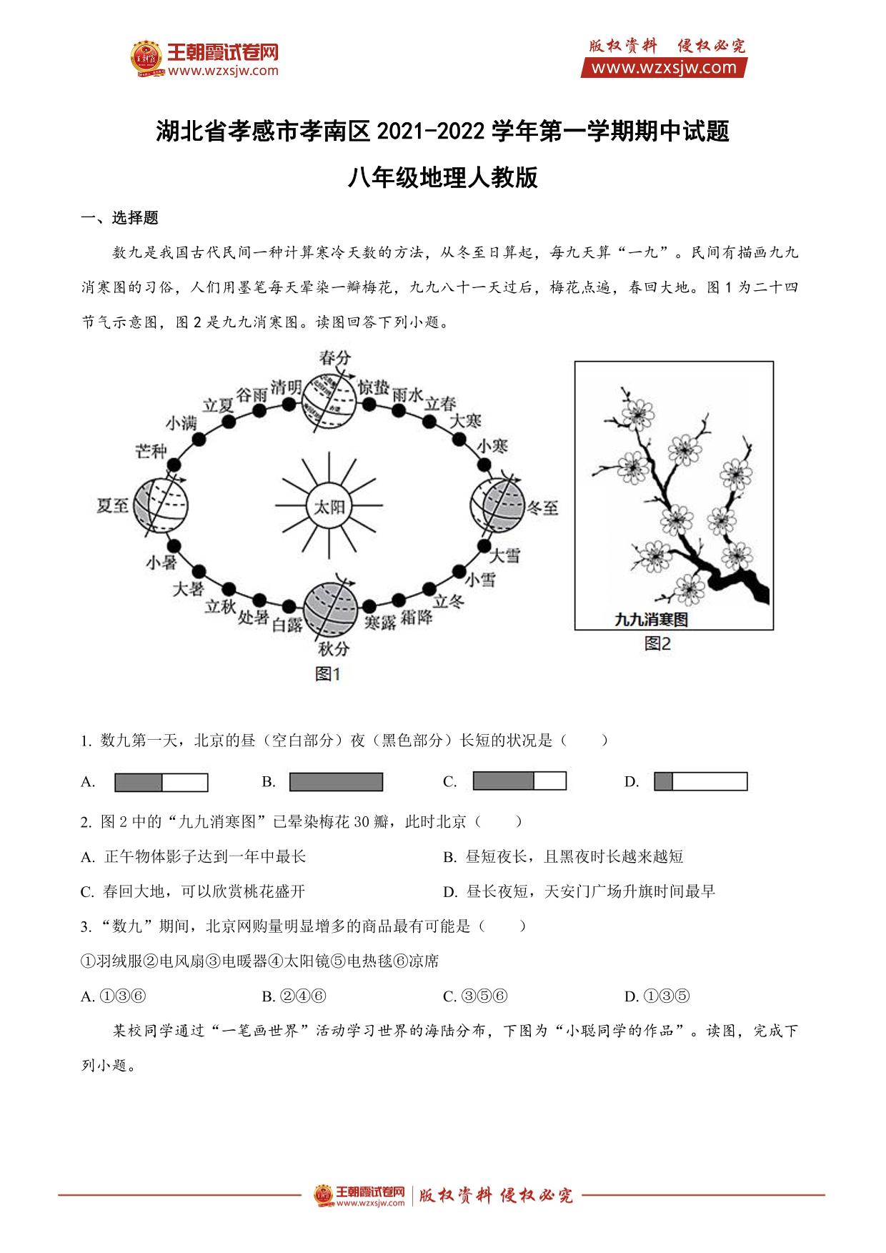 湖北省孝感市孝南区2021-2022学年第一学期期中试题八年级地理(人教版)