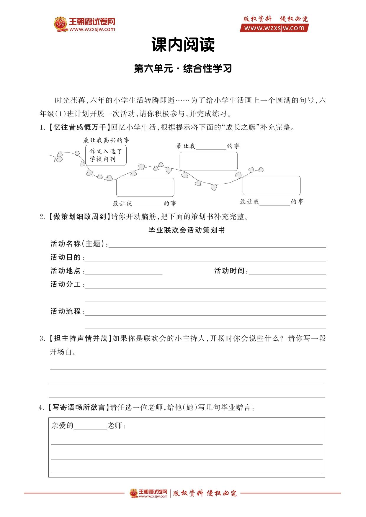 六年级语文人教版下册专项卷
