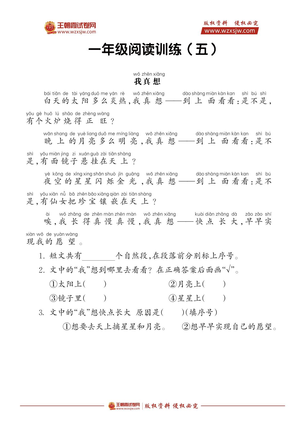 语文阅读训练一年级(五)