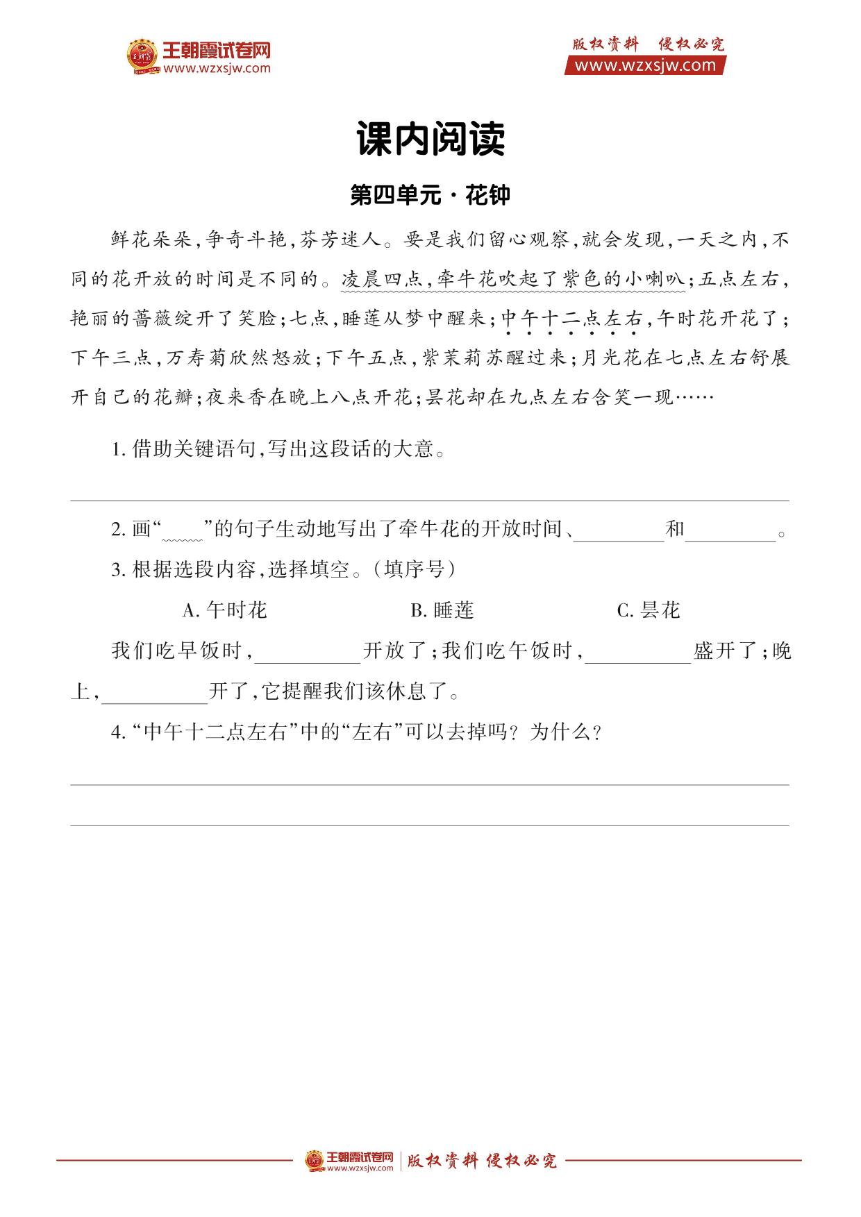 【语文阅读训练·三年级】第四单元课内阅读