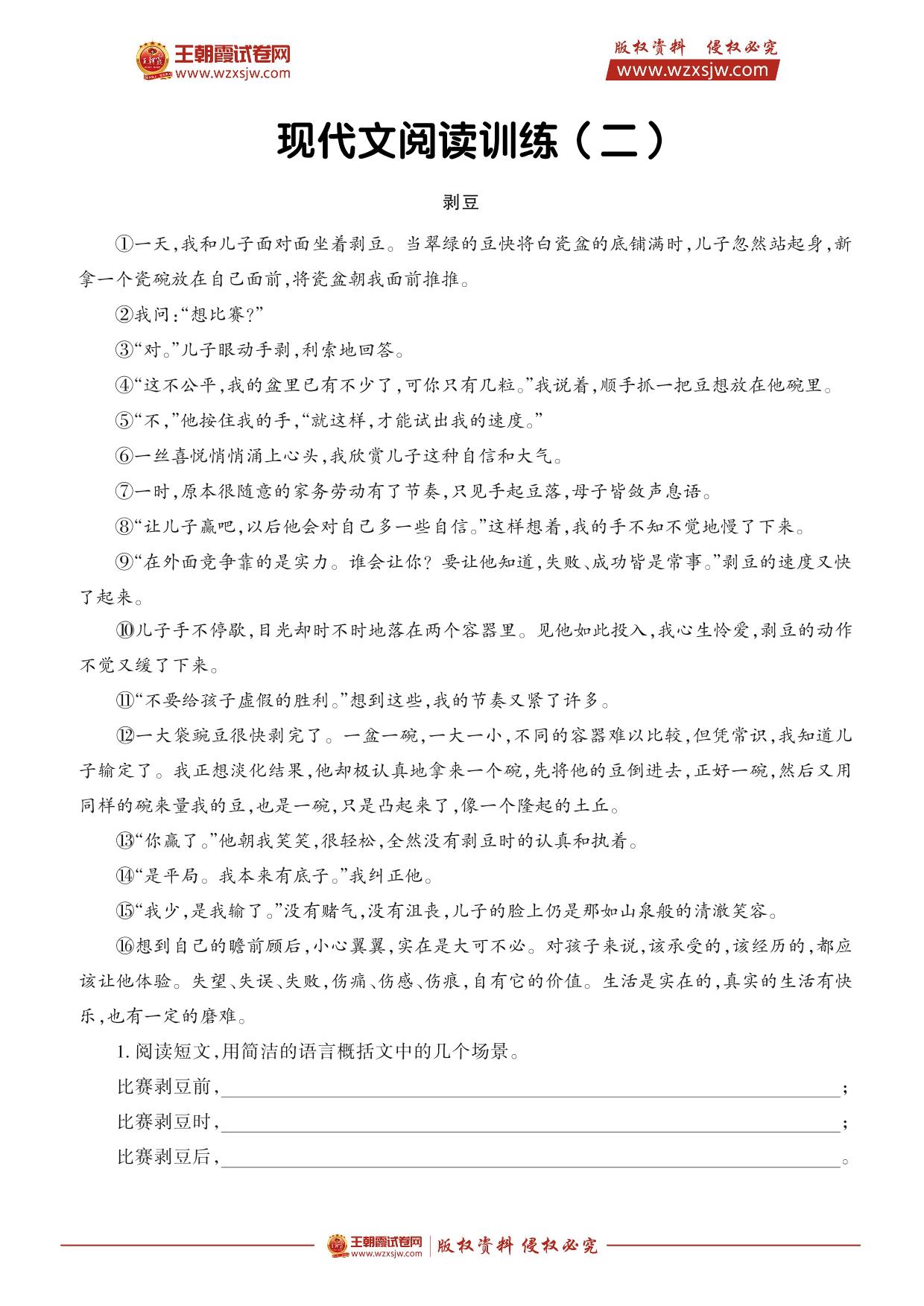 【语文阅读训练·六年级】专项1 现代文阅读(二)