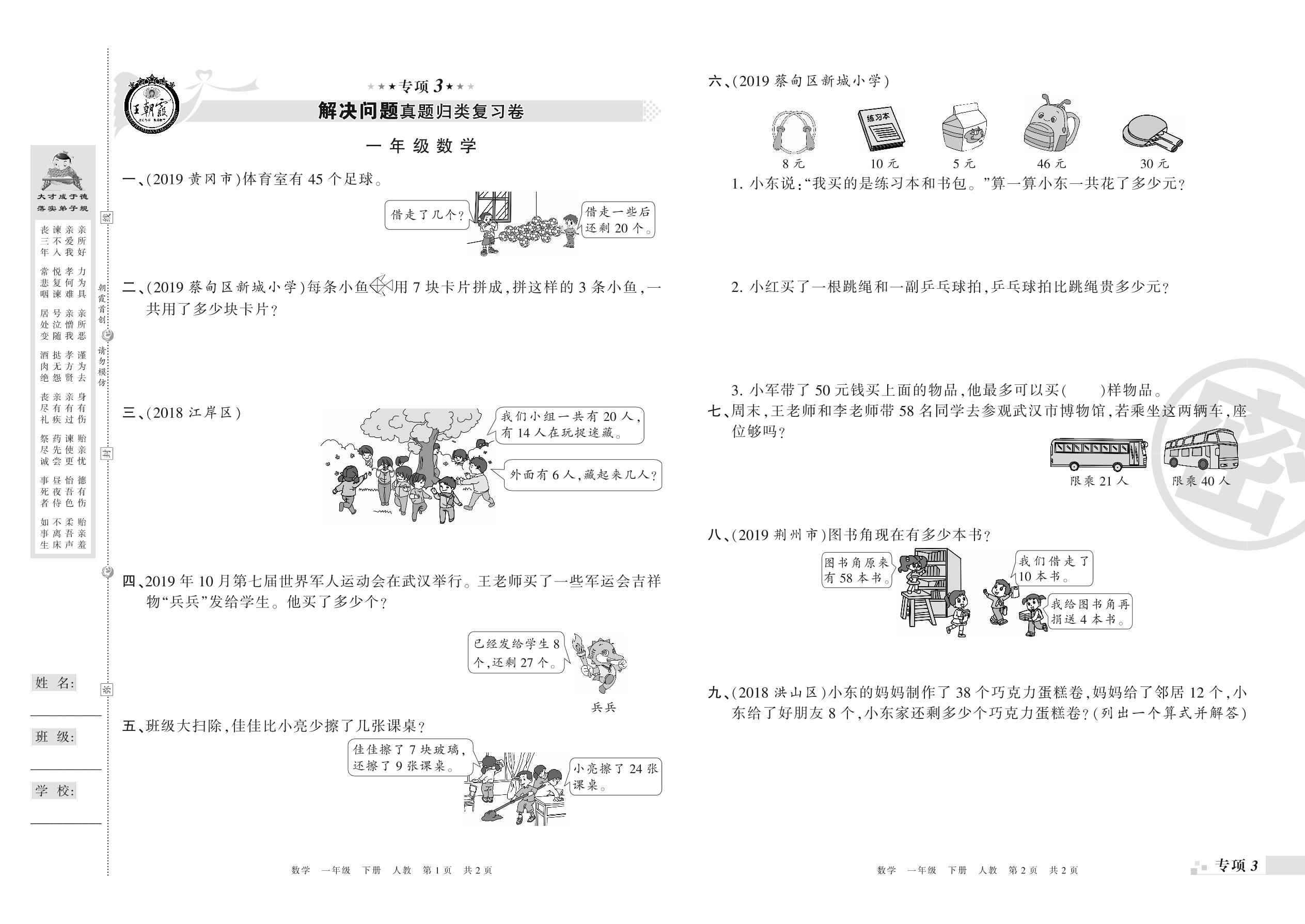 王朝霞期末专项卷——解决问题真题归类复习卷、新颖题速递:生活与数学一年级下册数学(人教版)_R210802213236【0】