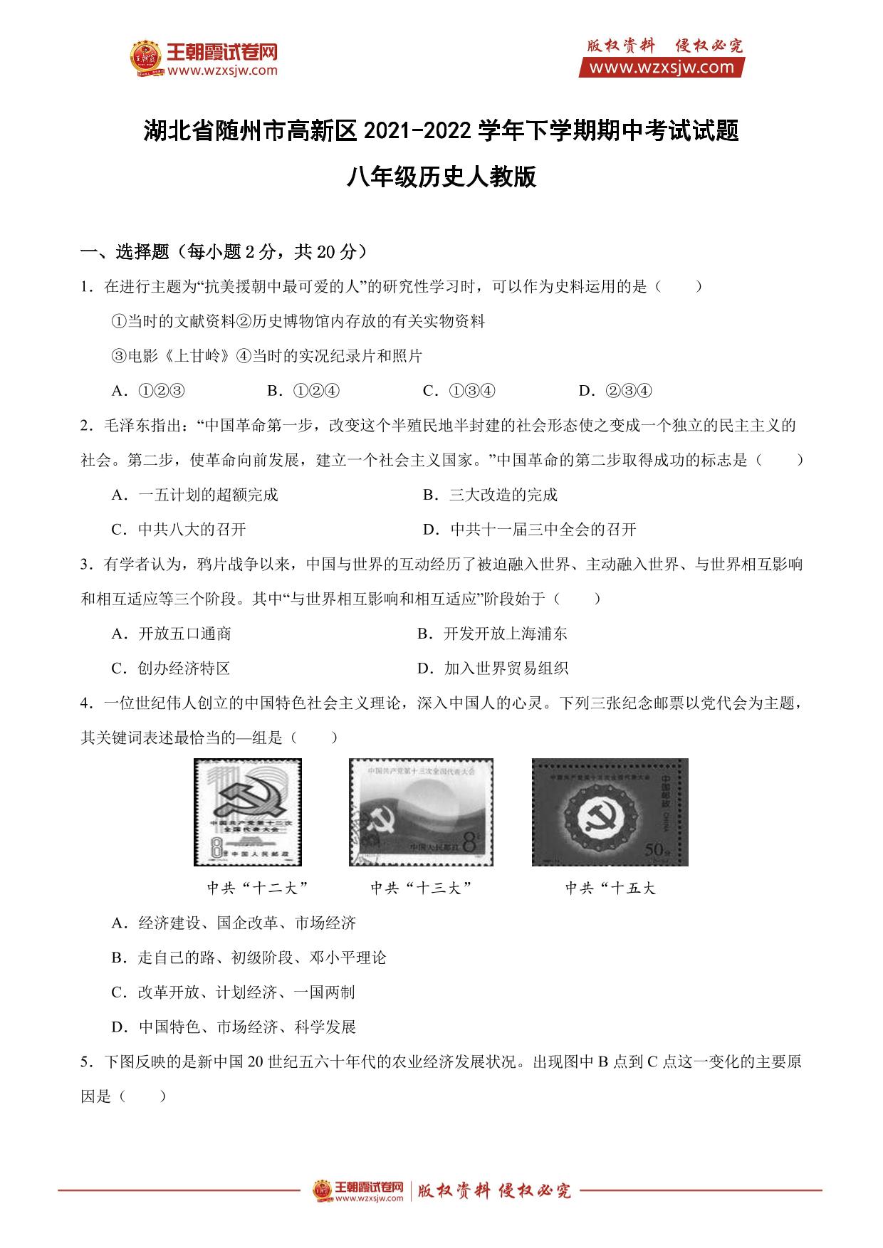 湖北省随州市高新区2021-2022学年下学期期中考试试题八年级历史(人教版)正文