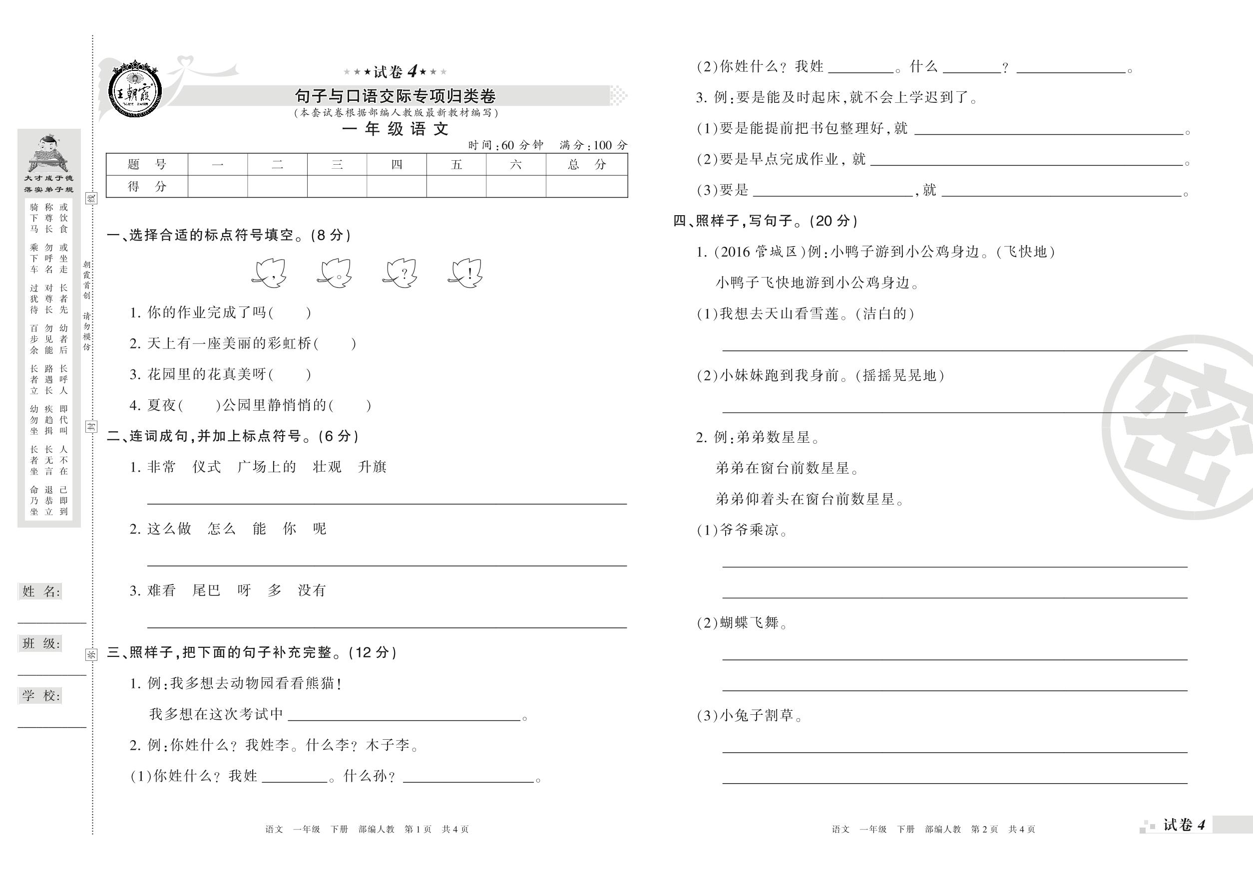 王朝霞期末专项卷——句子与口语交际专项归类卷一年级下册语文(人教版)_R210731190435【4】