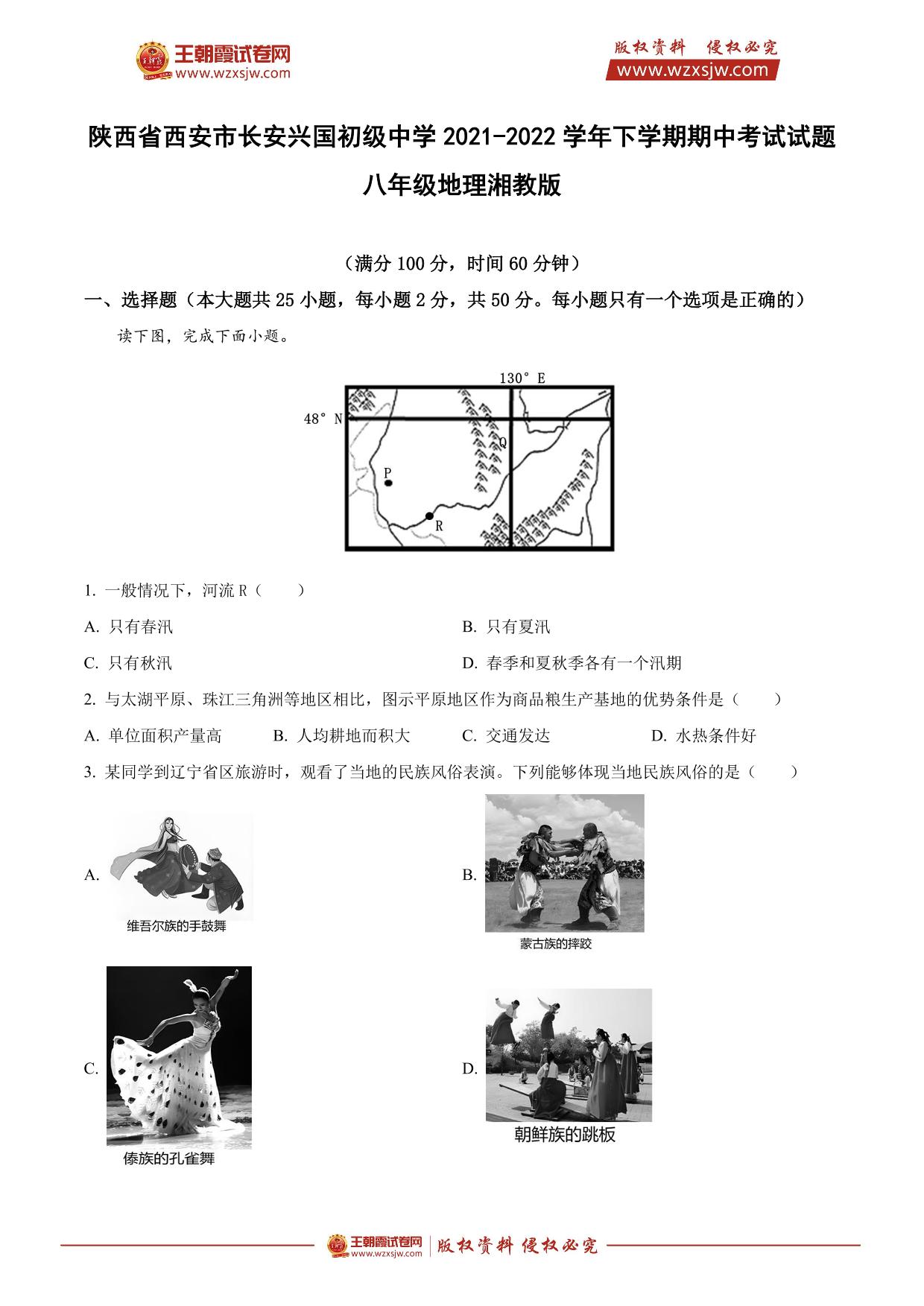 陕西省西安市长安兴国初级中学2021-2022学年下学期期中考试试题八年级地理(湘教版)