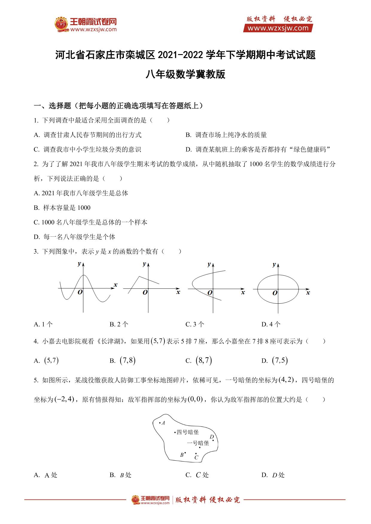 河北省石家庄市栾城区2021-2022学年下学期期中考试试题八年级数学(冀教版)