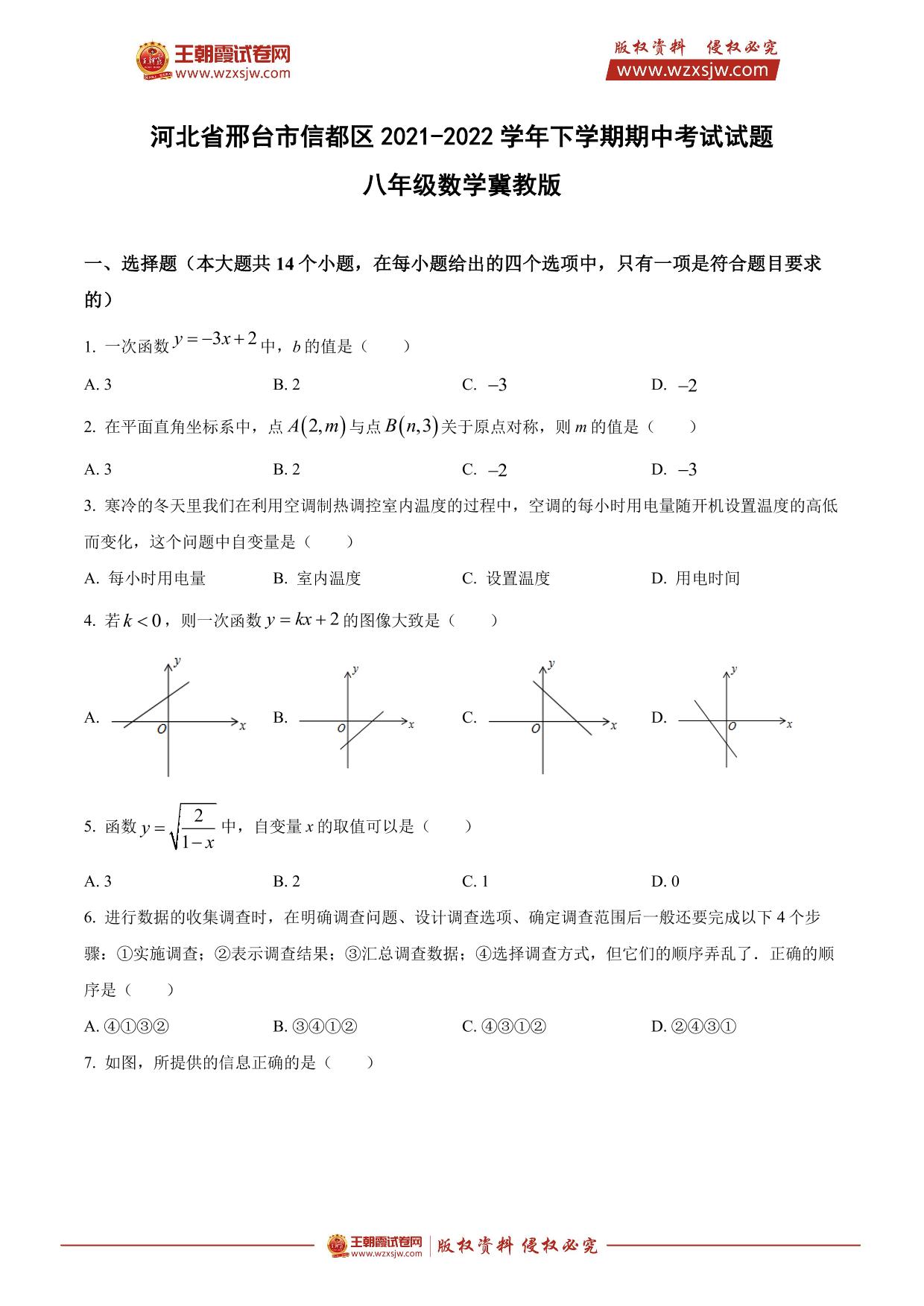 河北省邢台市信都区2021-2022学年下学期期中考试试题八年级数学(冀教版)