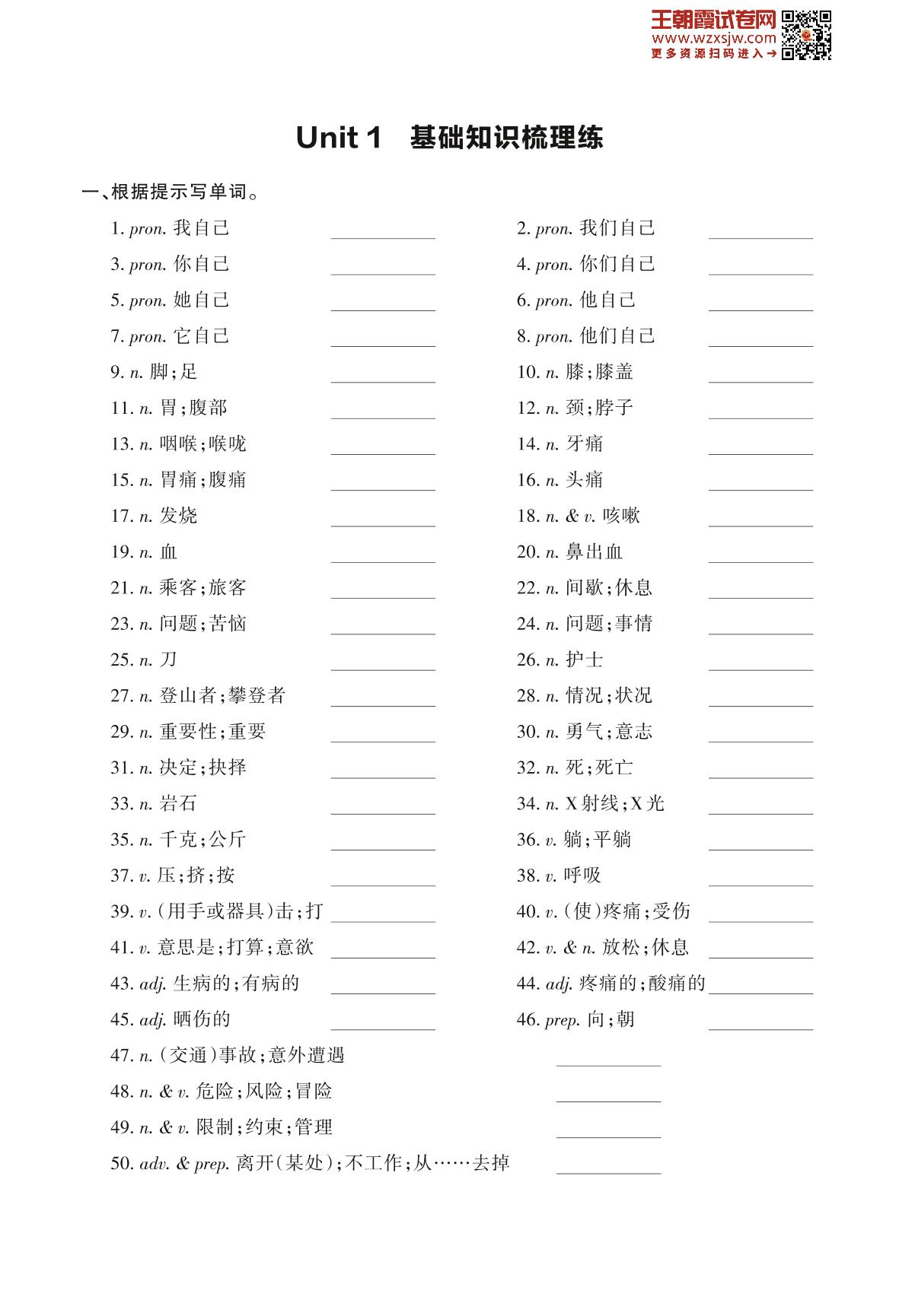 2023下册八年级英语人教版 基础知识梳理练——Unit 1