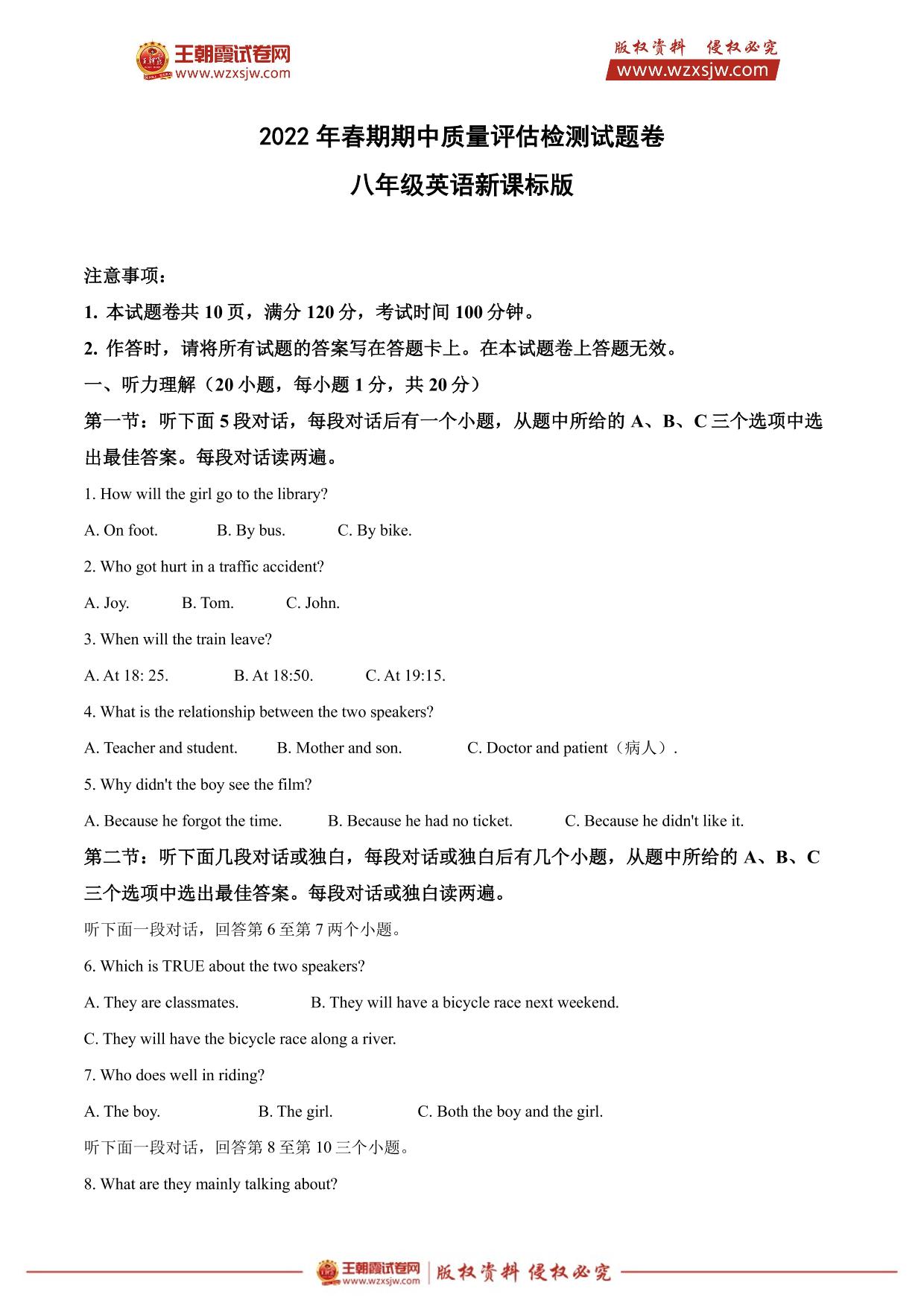 河南省南阳市宛城区2021-2022学年下学期期中质量评估试题八年级英语(新课标版)【无听力音频】
