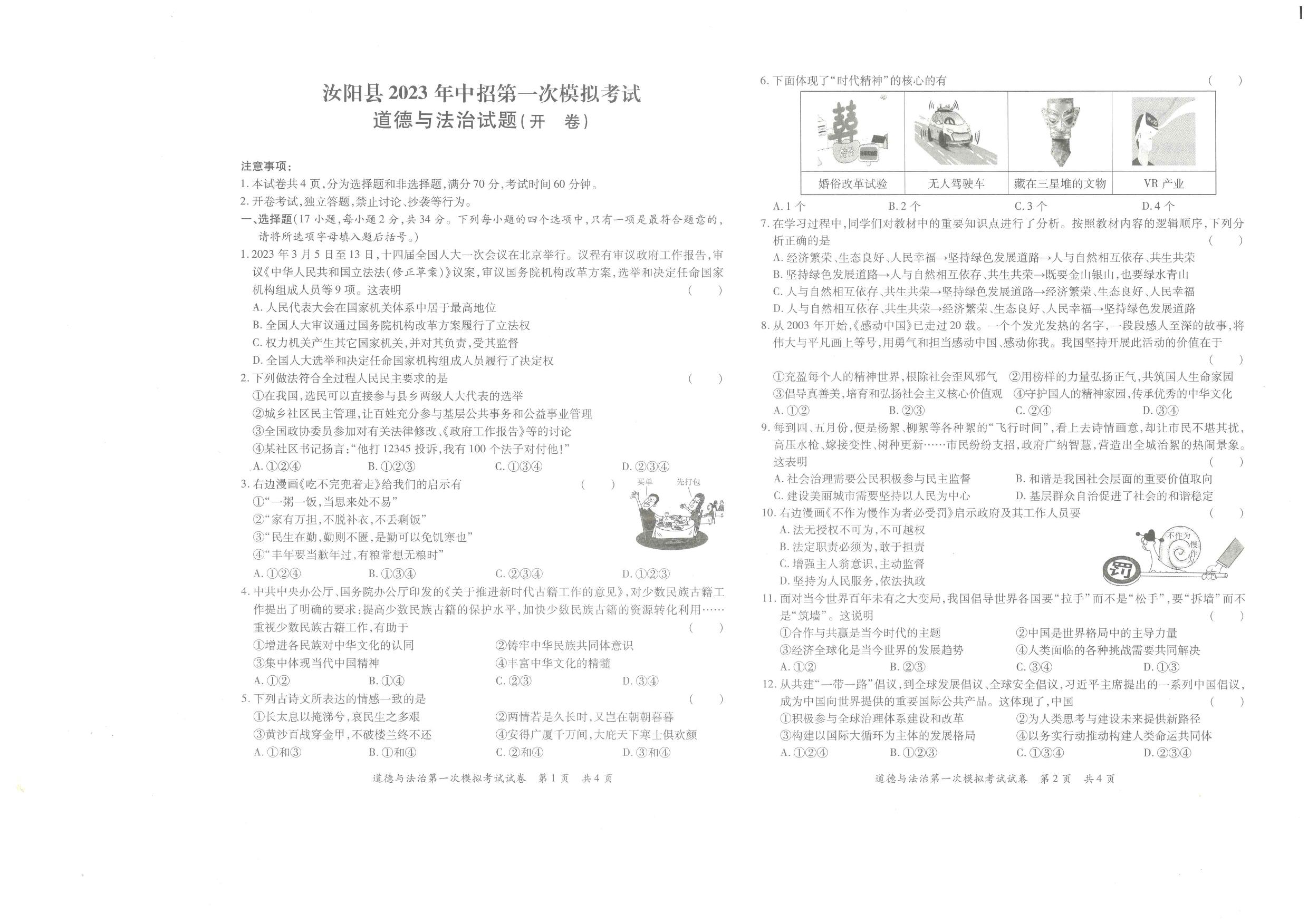 洛阳市汝阳县2023年中招第一次模拟考试道德与法治试题