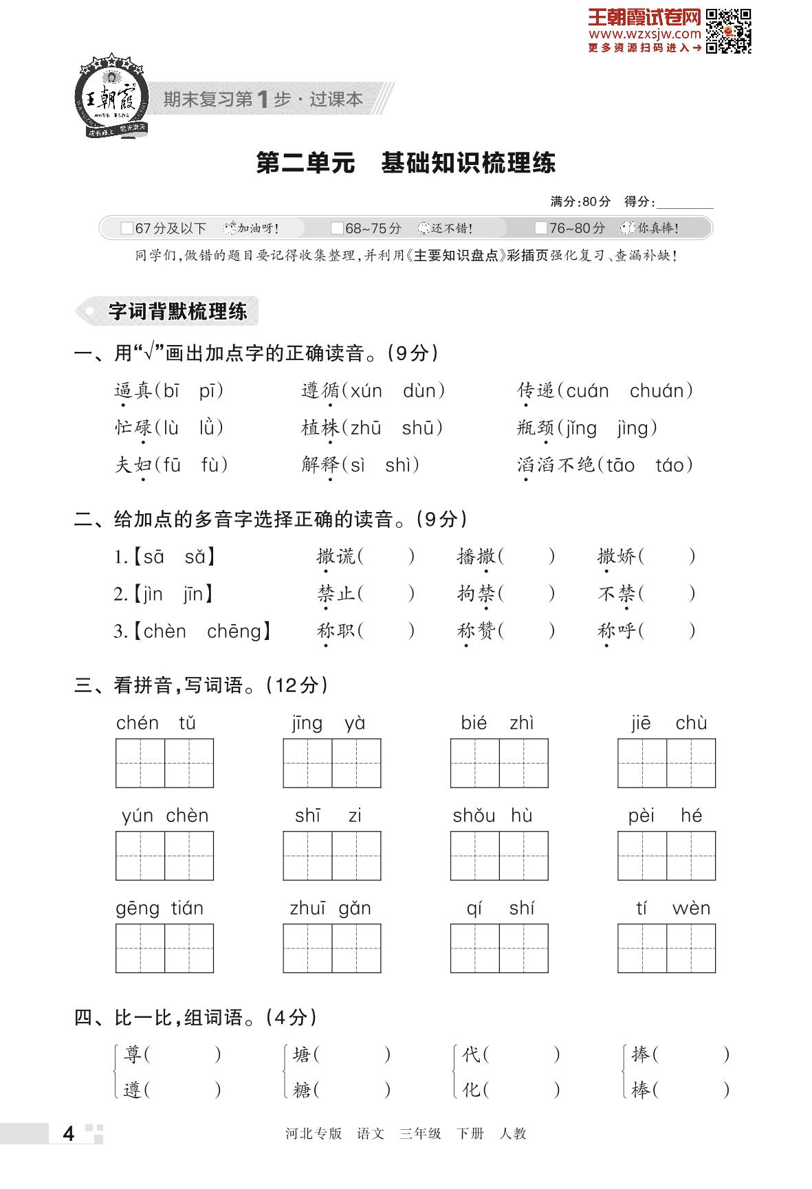 王朝霞期末过课本——第二单元 基础知识梳理练三年级下册语文(人教版)_R230419135206152