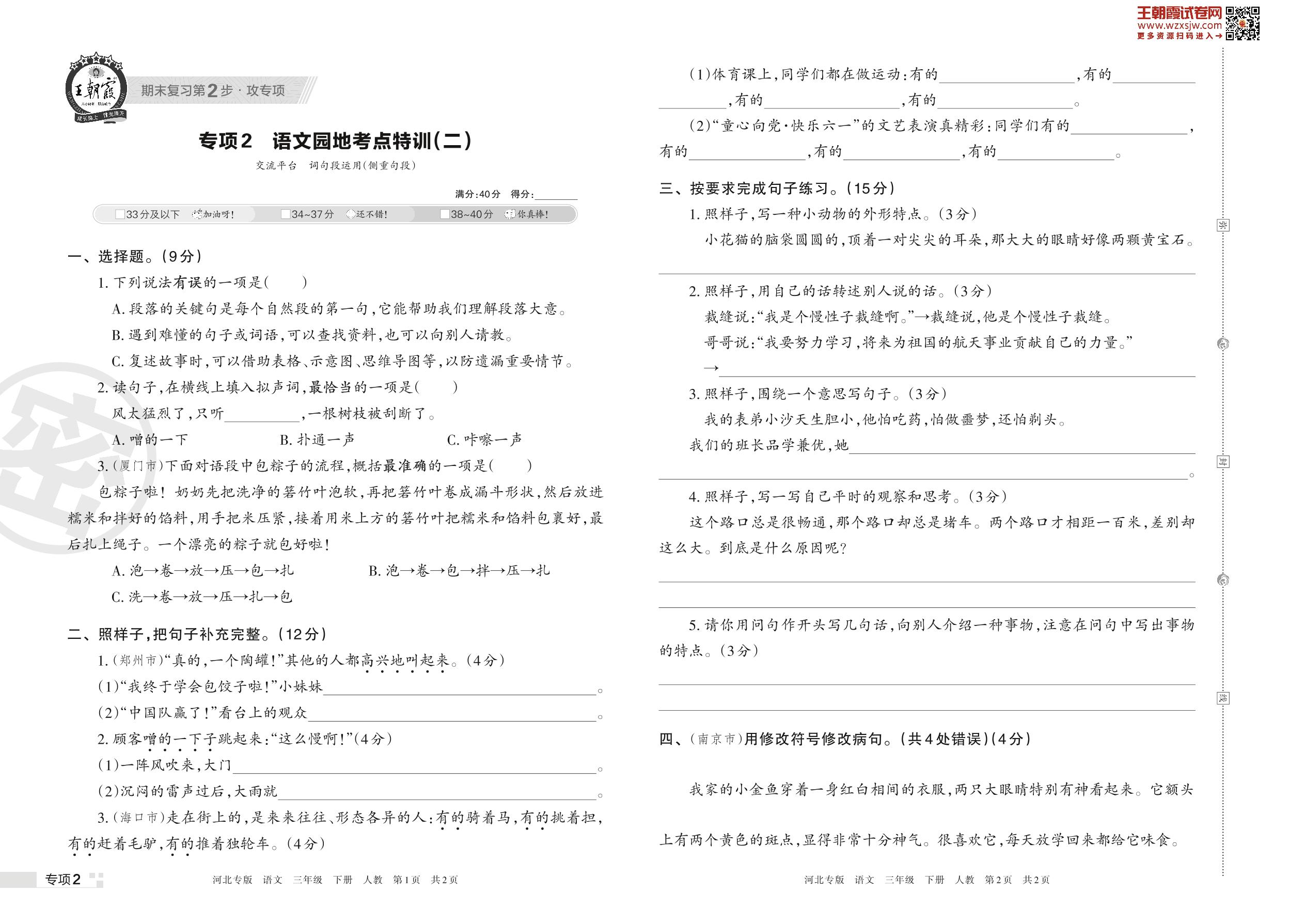 王朝霞期末专项卷——语文园地考点特训(二)三年级下册语文(人教版)_R230419135206964【2】