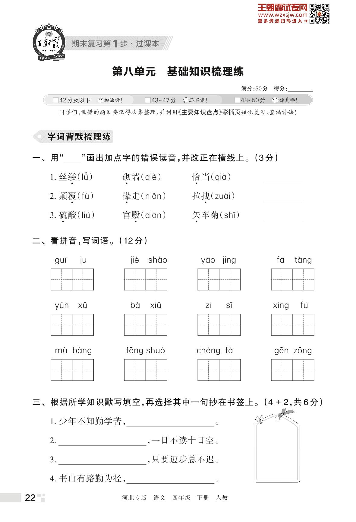 王朝霞期末过课本——第八单元 基础知识梳理练四年级下册语文(人教版)_R230419141731956